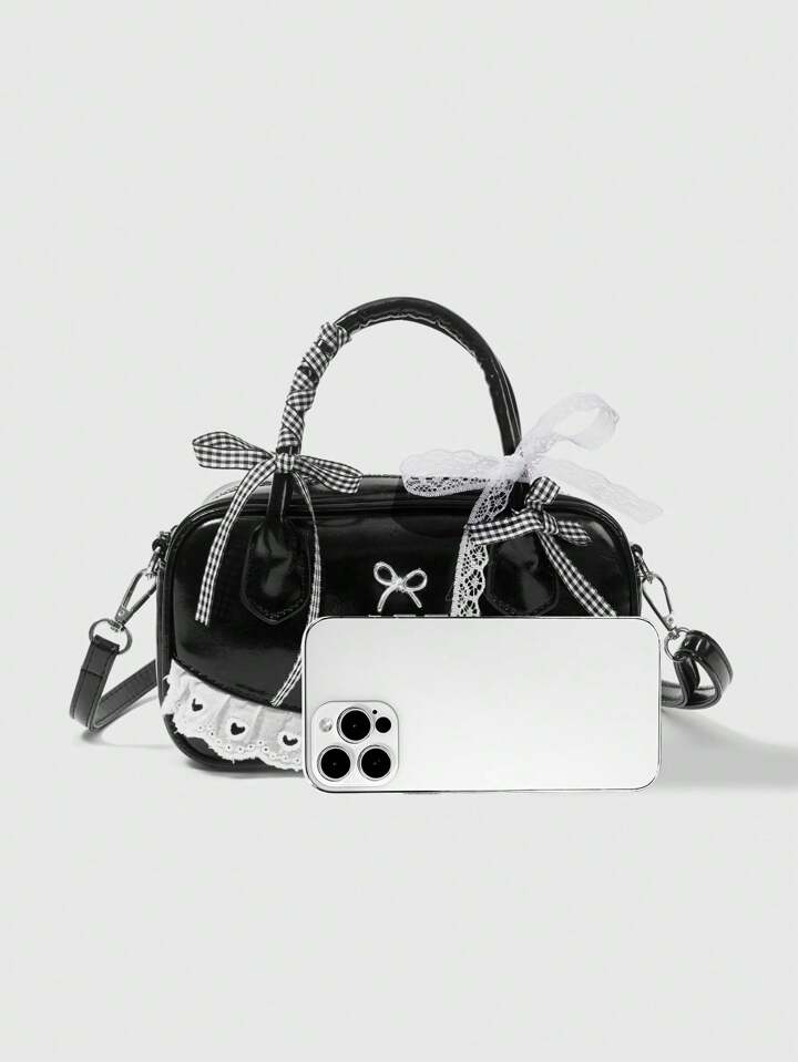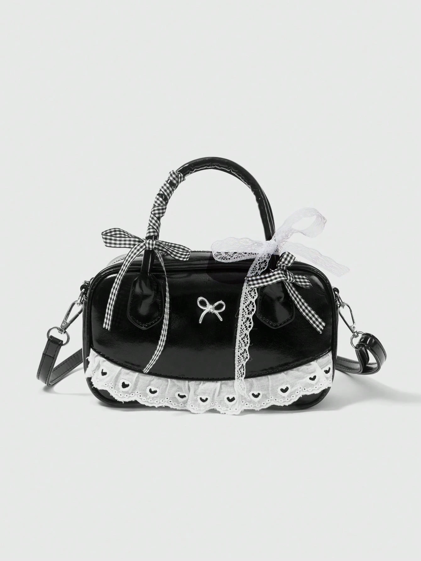 Kawaii حقيبة يد من جلد البولي يوريثان مع تريمينغ من الدانتيل للنساء، لاستخدام اليومي