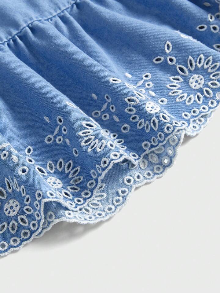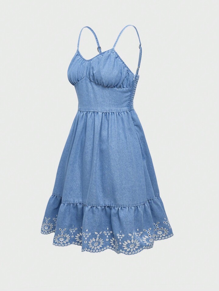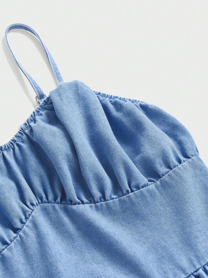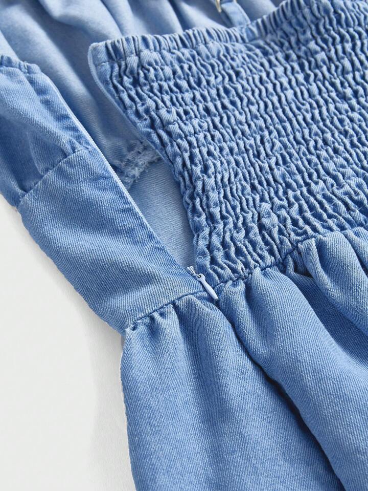 Kawaii فستان جينز كامي بطية مزمومة واسعة بتقنية القطع بالليزر