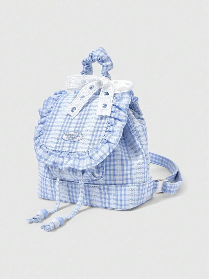 Kawaii حقيبة ظهر نسائية أنيقة من ألياف حرير والفتلة والمرقع بنمط الشريط المربع ،خفيفة الوزن مناسبة للاستخدام اليومي