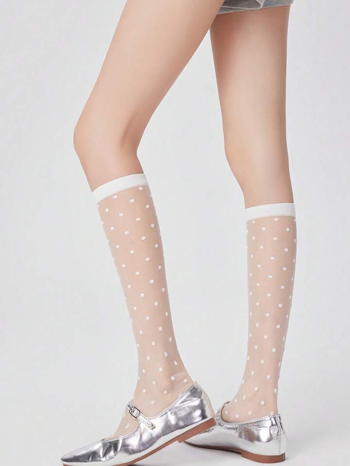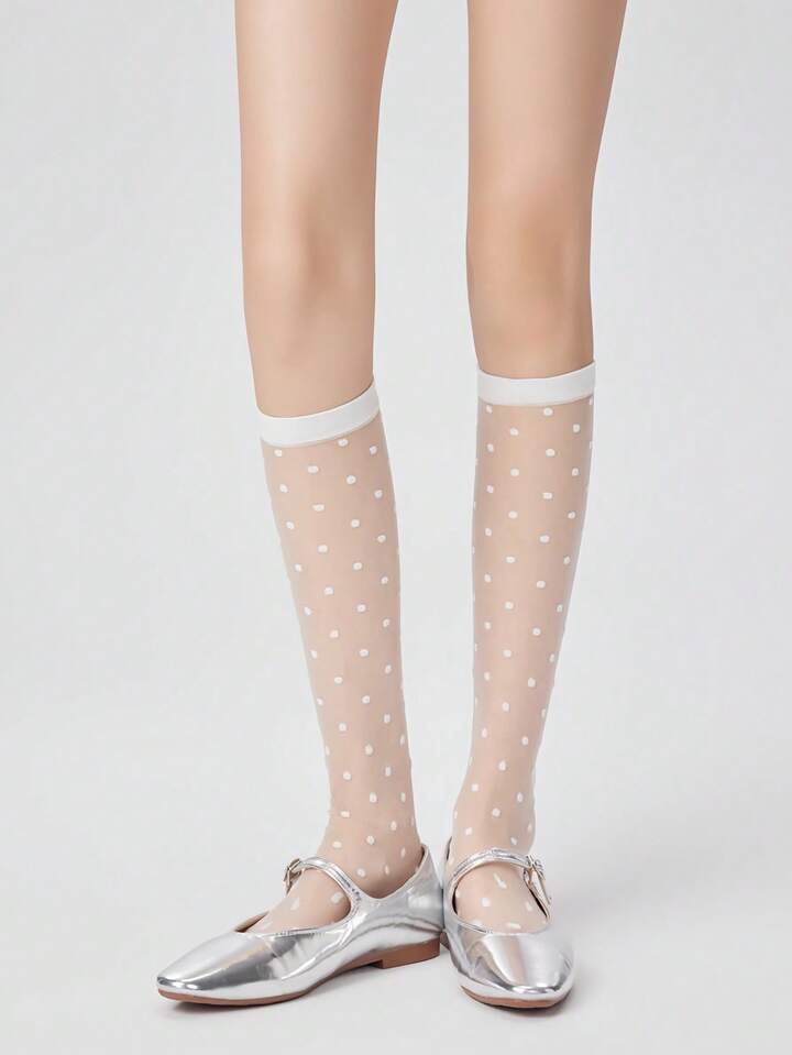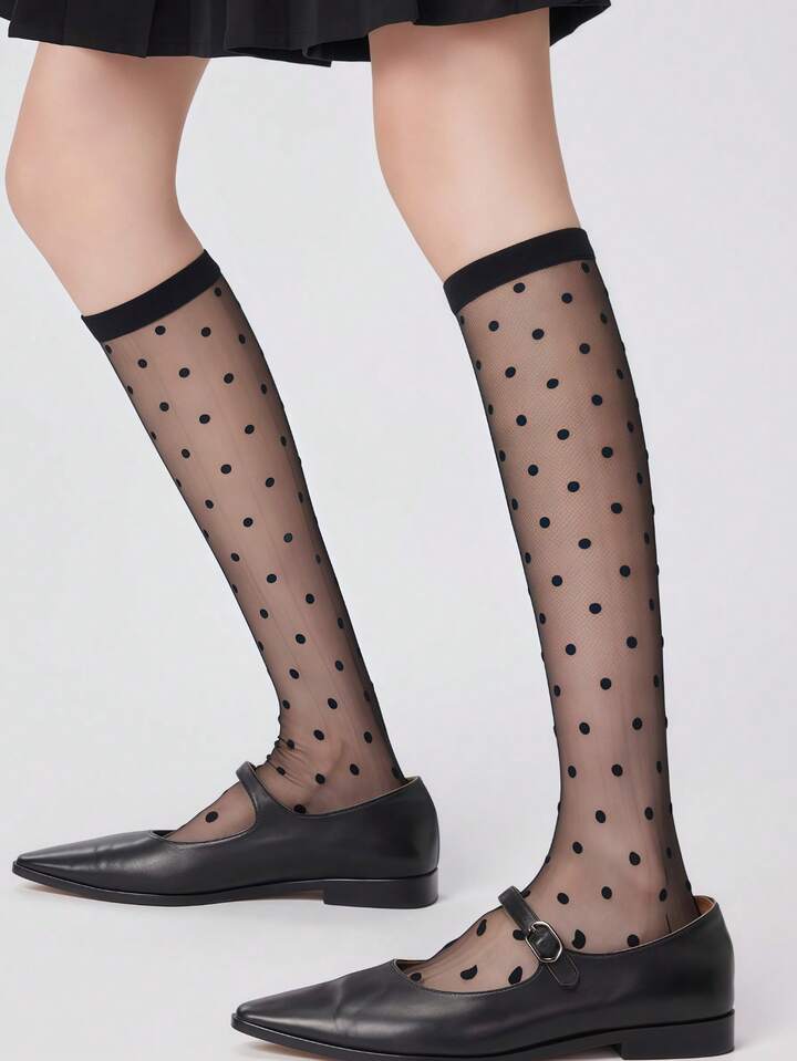 Kawaii جوارب الكاحل ذات البقع البيضاء والسوداء المنقطة، المنسوجة المنفذة للهواء، العصرية الكاجوال متعددة الاستخدامات في الربيع والصيف