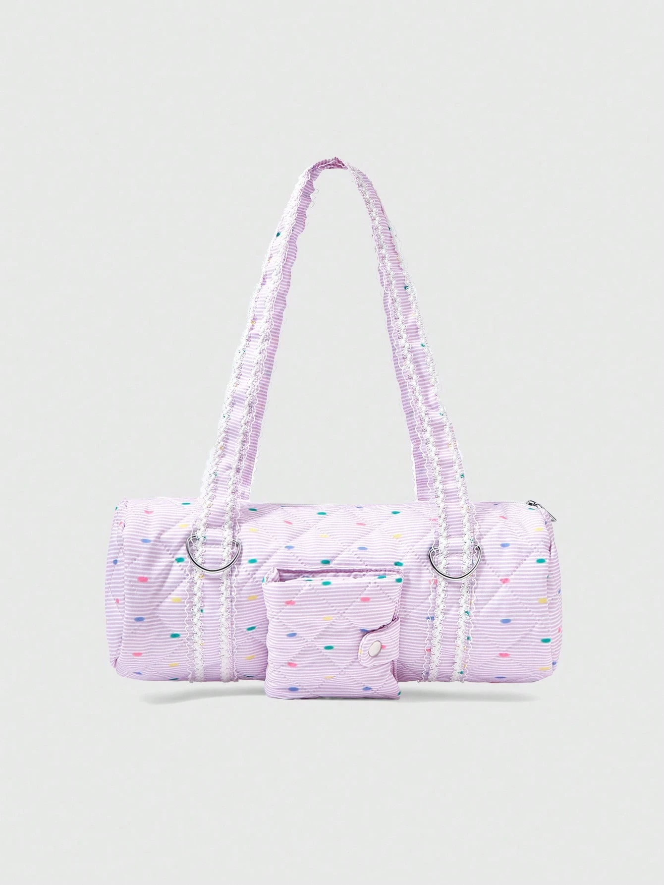 Kawaii حقيبة كبيرة مزودة بجيب ، مصممة بحمالات كتف وأشرطة دانتيل مطبوع عليها بنقاط متعددة الألوان ملونة كحلوى مناسبة للتصوير والهوية والحفلات والعطلات والتسوق ، جميلة وحلوة
