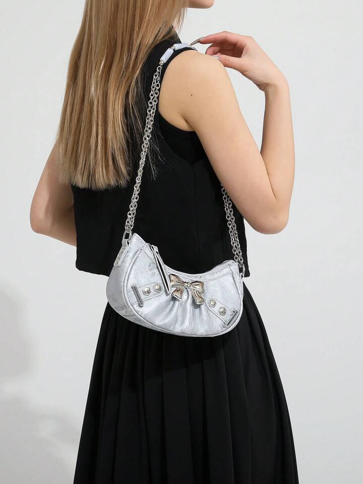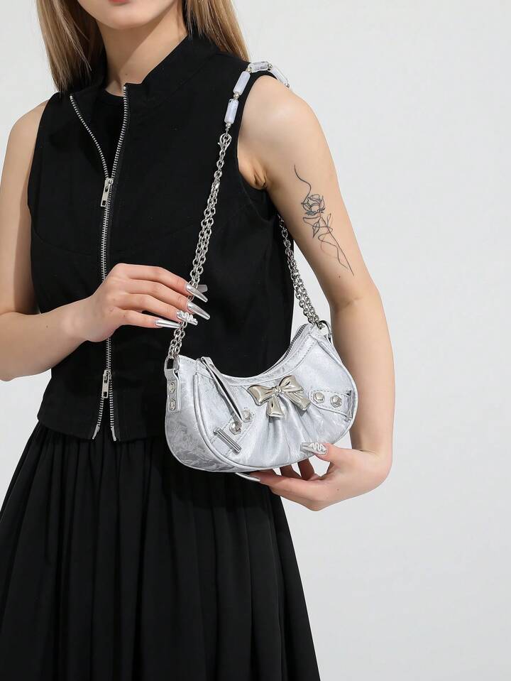 Kawaii حقيبة كتف سلسلة على شكل ربطة العنق الجديدة، حقيبة نسائية جماعية الطراز البانك القوطي
