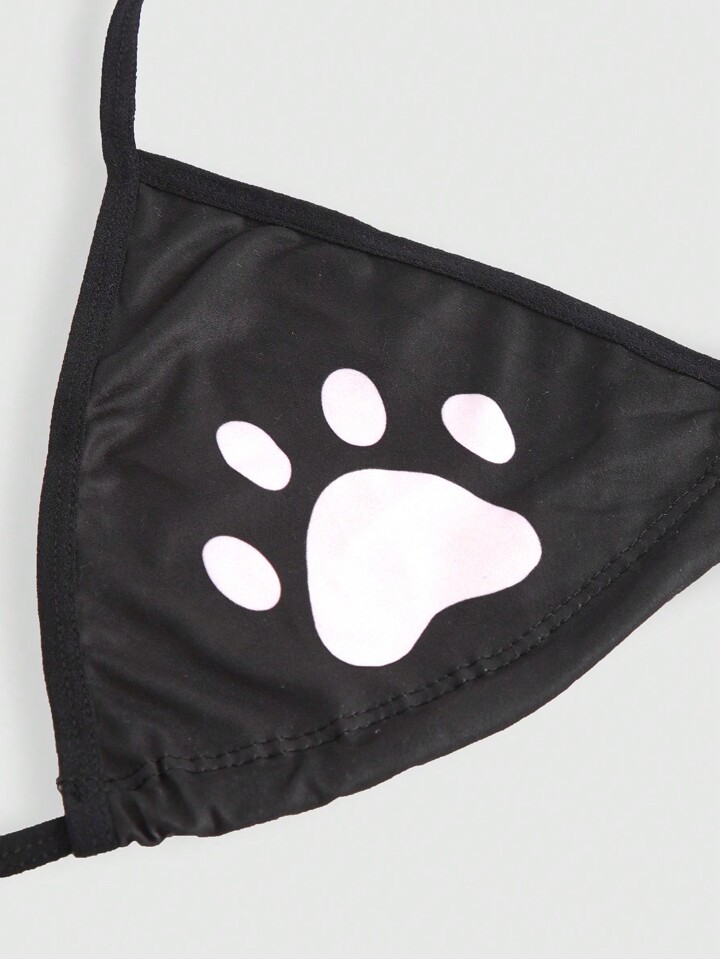 Kawaii طقم ملابس داخلية بطباعة مخلب رسن ربطة جانبي