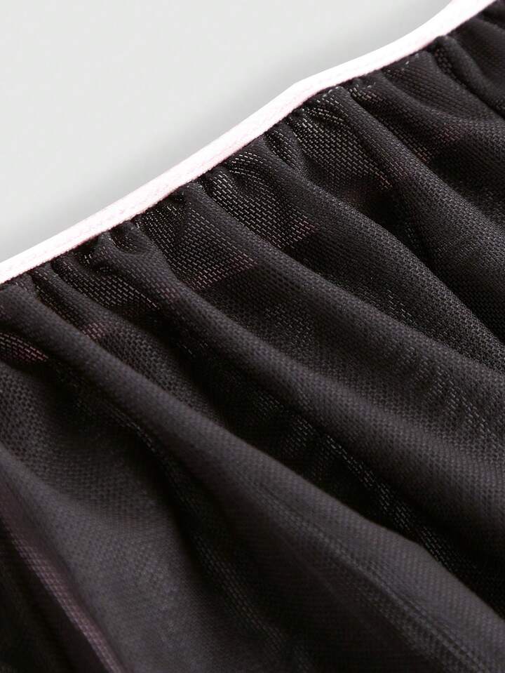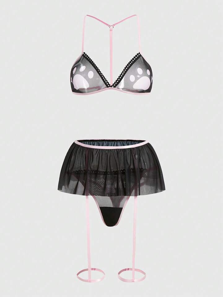 Kawaii طقم ملابس داخلية بطباعة مخلب شبكة رباط ساق