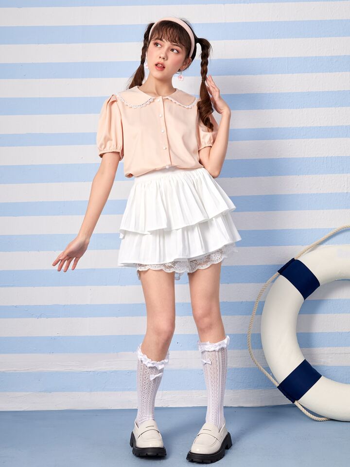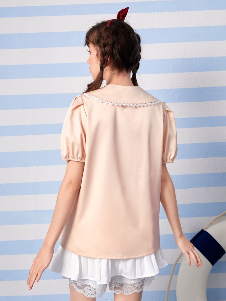 Kawaii قميص ياقة سحري اكمام منتفخة أزرار أمامية