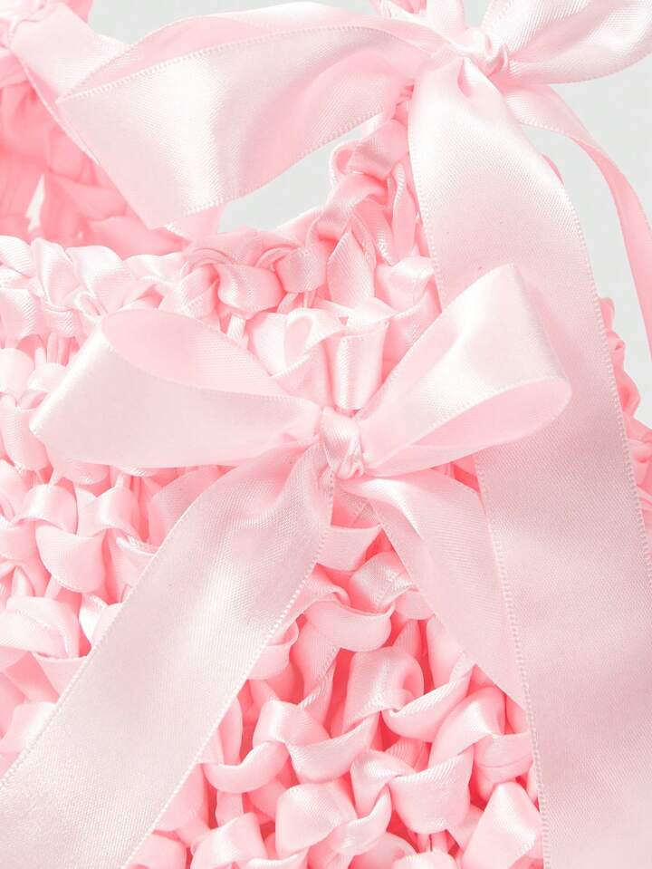 Kawaii حقيبة يدوية كروشيه وردية لطيفة بشكل فيونكة للنساء، هدية عيد الحب