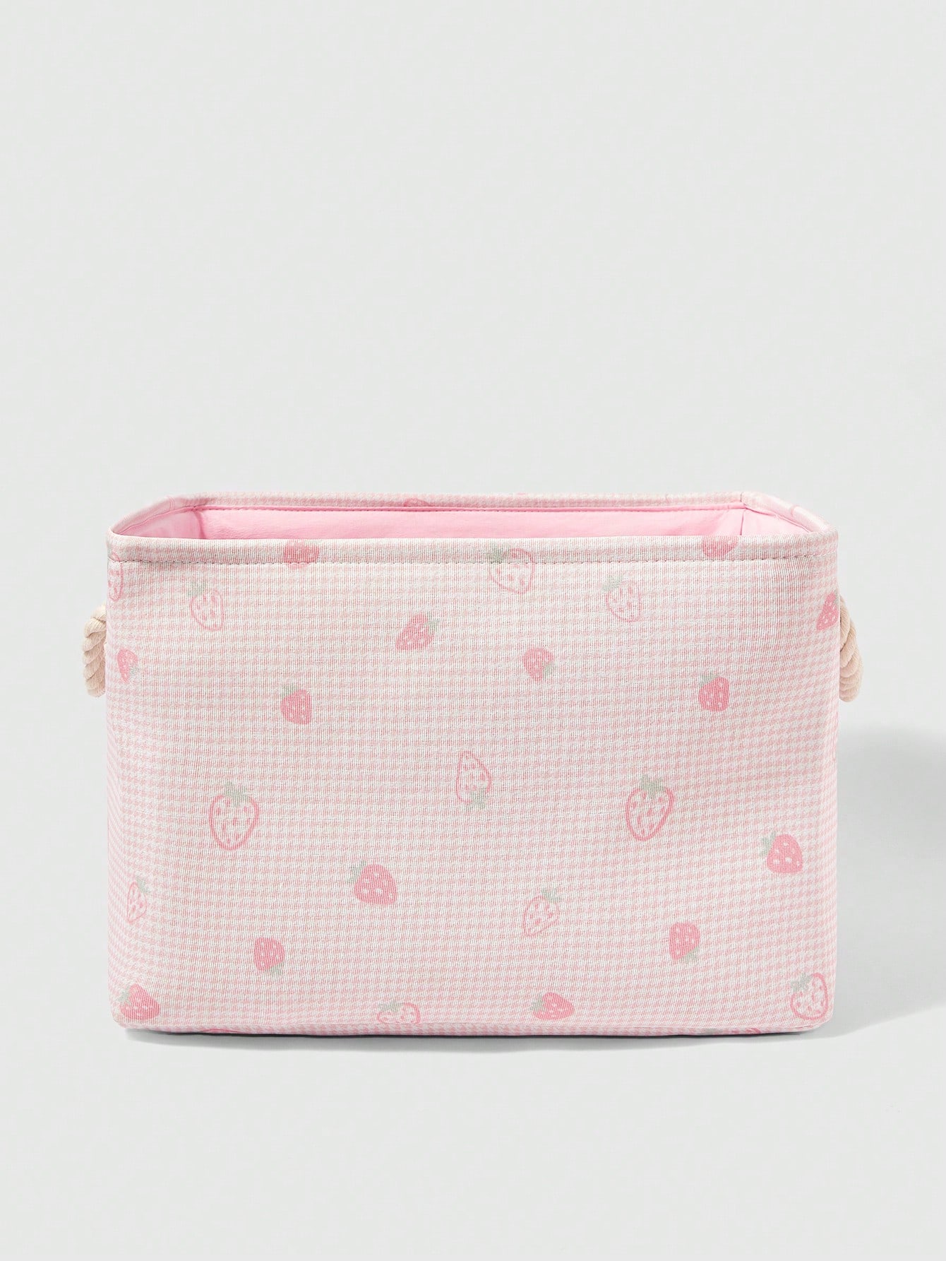 Kawaii سلة غسيل كبيرة السعة محمولة بنمط مربع وفراولة وردية اللون، سلة تخزين الملابس القذرة، رقم المنتج 327188