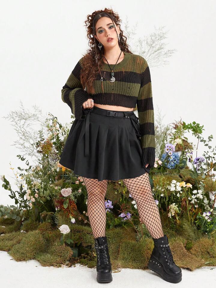 Kawaii تنورة ذو تجاعيد موحدة اللون حزام مقاس كبير
