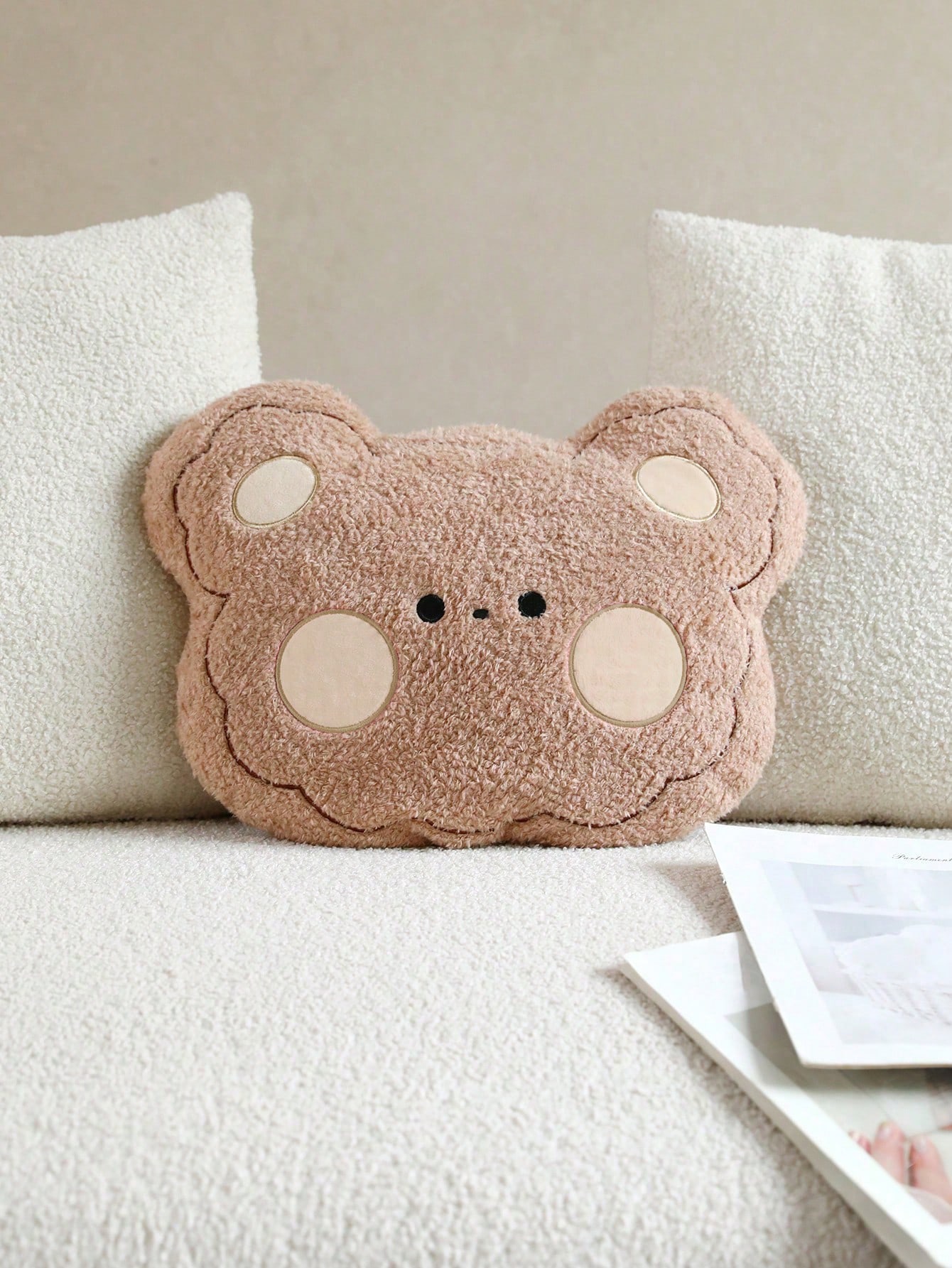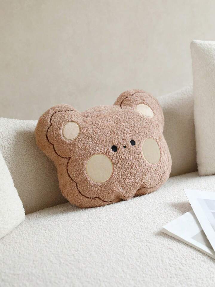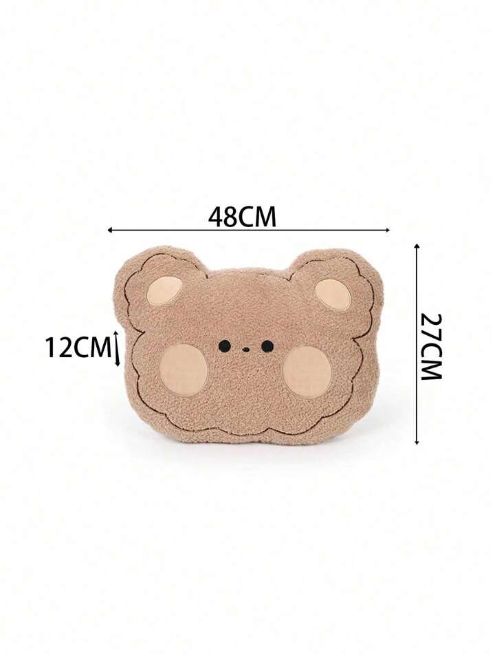 Kawaii وسادة دعم الخصر لمسند الذراعين من الصوف القطبي باللون الكاكي مع تصميم الدب