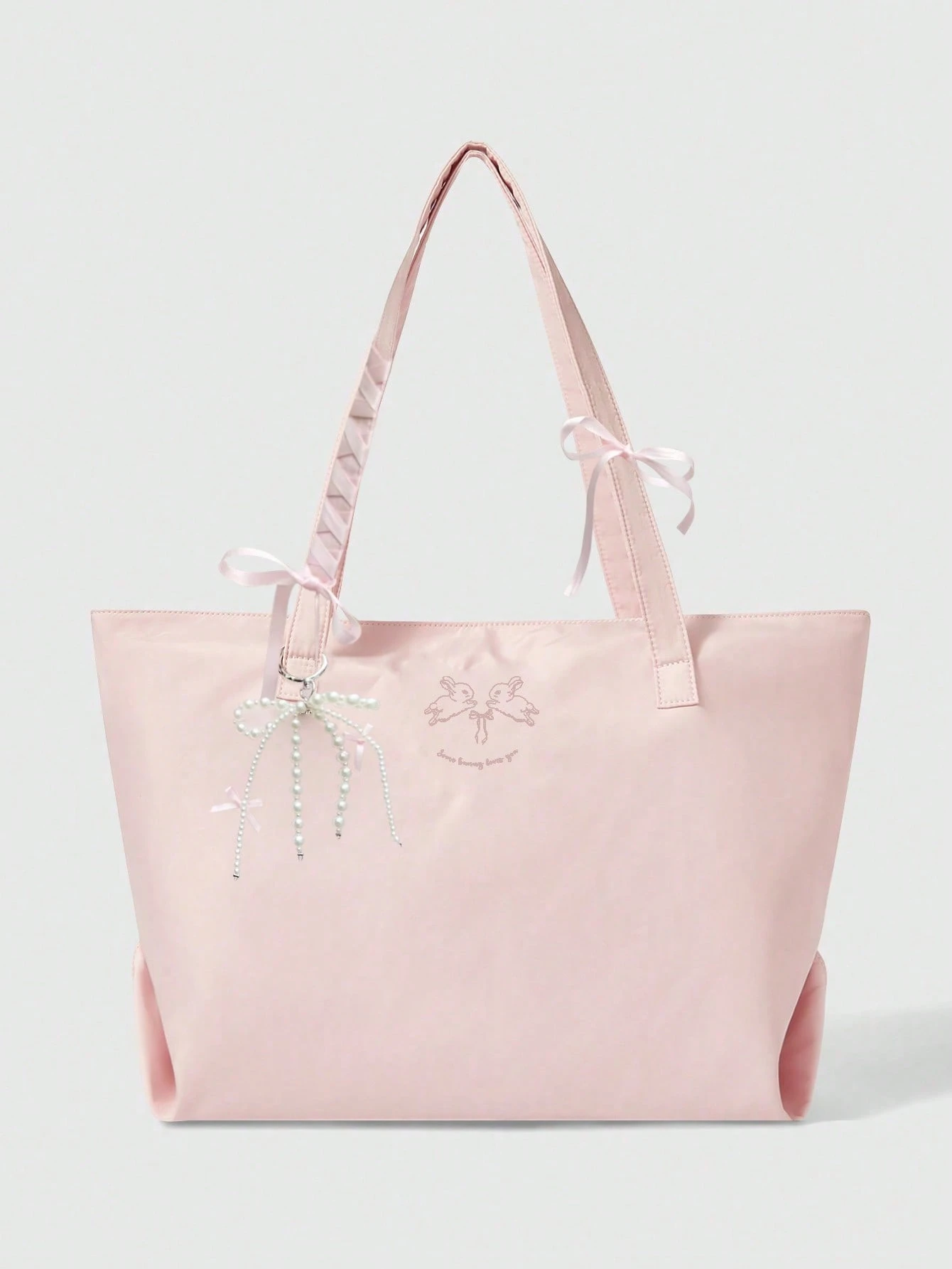 Kawaii حقيبة تسوق كبيرة السعة من قماش أكسفورد الأناقة والمتعدد الاستخدامات، حقيبة كتف مع تطريز على شكل أرنب 336027
