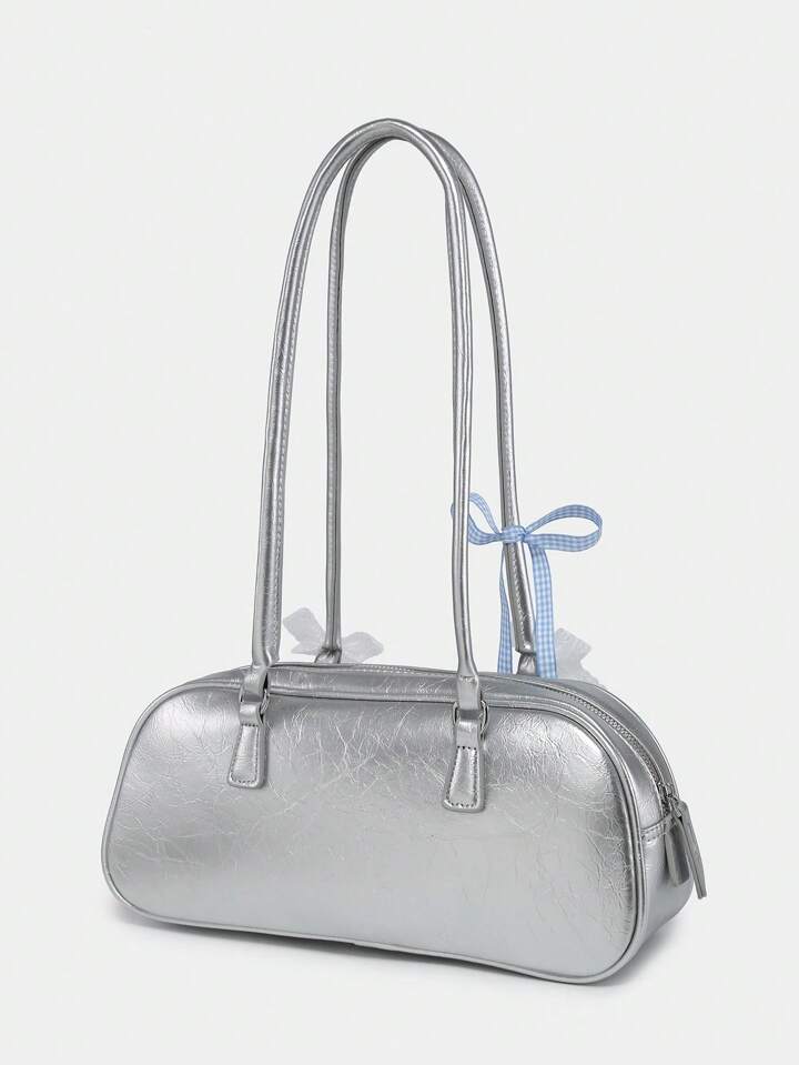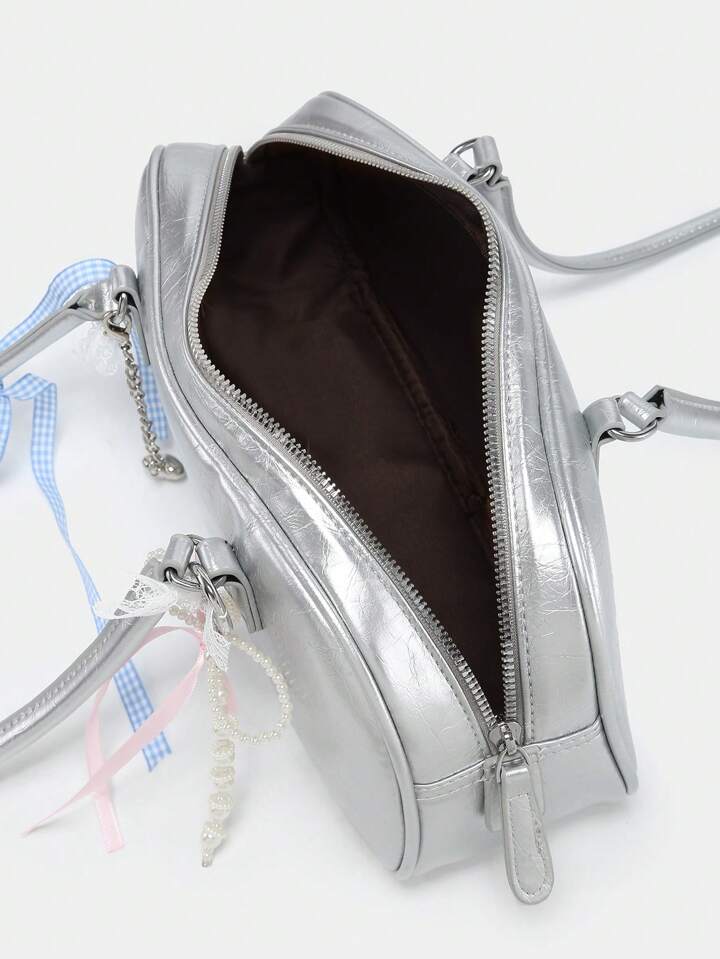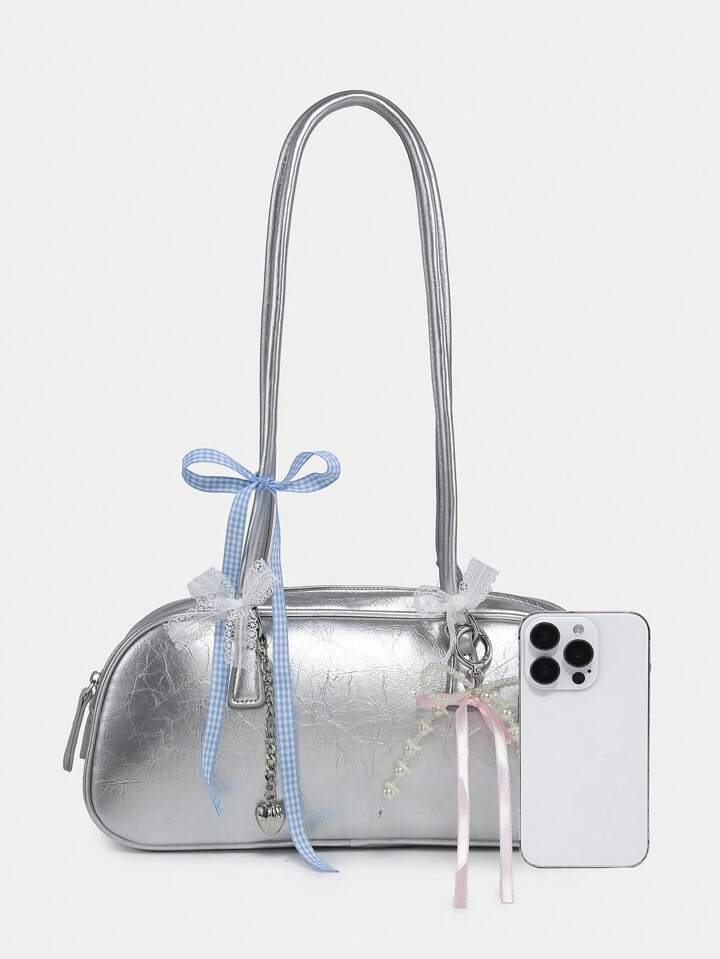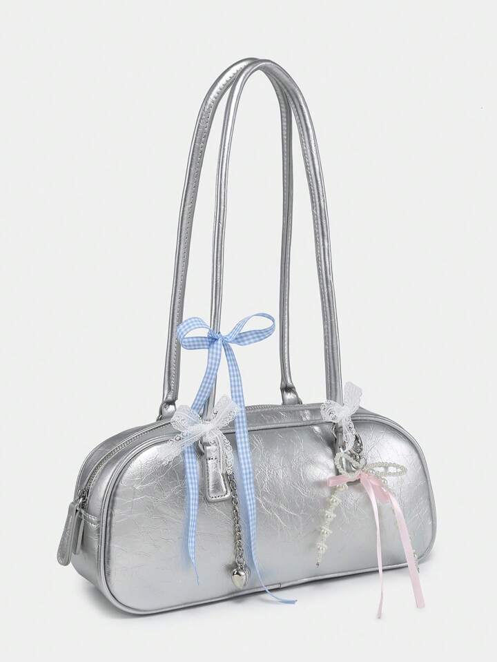 Kawaii حقيبة كتف / إبطية ذات جيوب متعددة للنساء مزينة بجبنة شطرنجية وفيونكة وتصميم الكرز والقلب بطراز عتيق