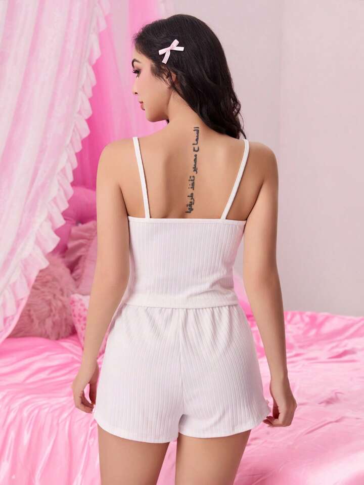 Kawaii مجموعة ملابس نوم رومانسية بمناسبة عيد الحب من قطعتين ملابس علوية بلا أكمام مزين بفيونكة محبوكة والشورت