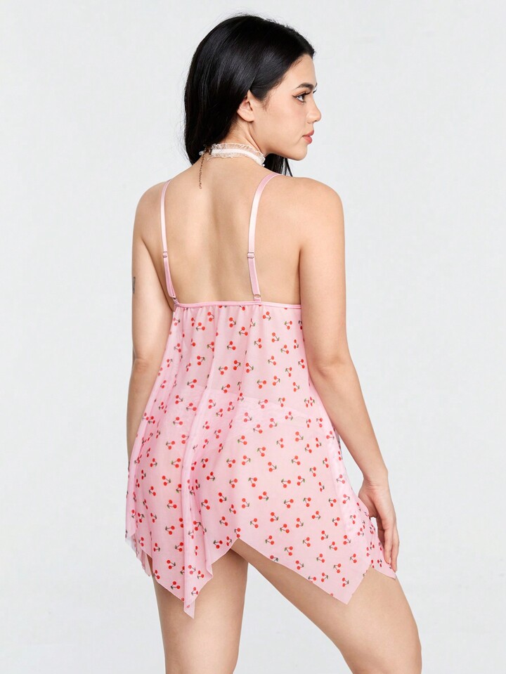 Kawaii مجموعة فستان مغري مكونة من الكرز المثير وتزيين الشريط المجوف اللاسيمتري وربطة العقدة