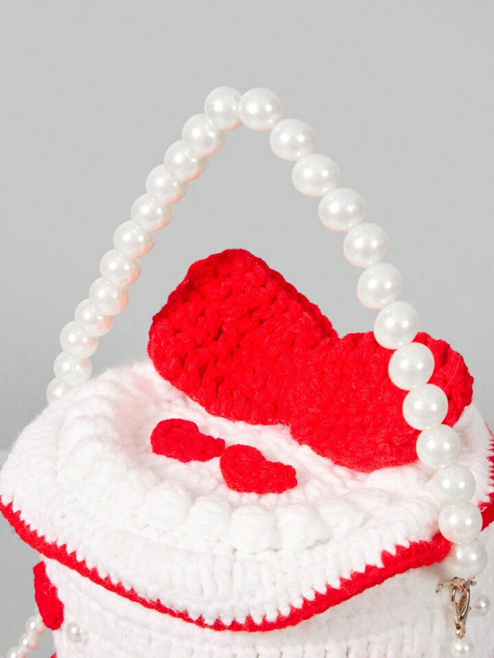 Kawaii حقيبة كتف كاجوال بسيطة للنساء بتصميم ألوان متباينة ومزينة بالؤلؤ الزائف