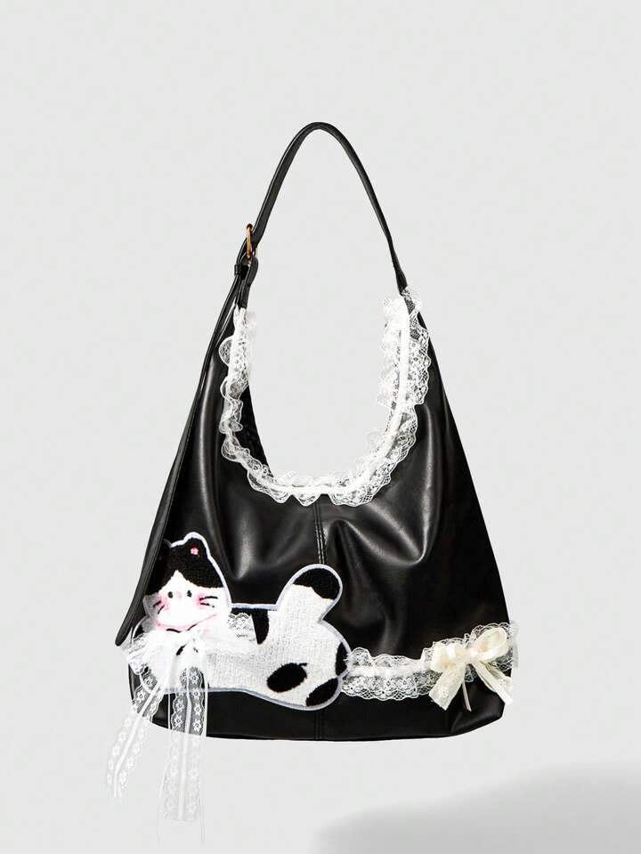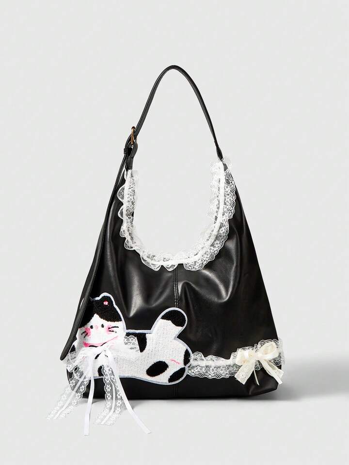 Kawaii حقيبة كتف أحادية، حقيبة متقاطعة، حقيبة ذات طبقتين من الدانتيل جميلة