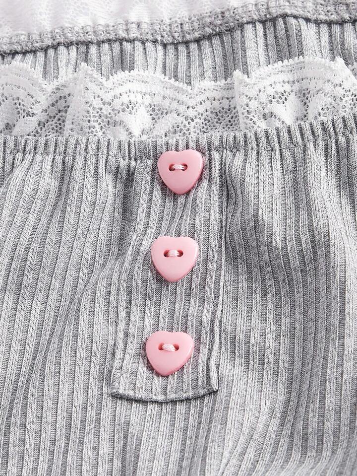Kawaii تي شيرت موحدة اللون دانتيل متباين اللون اكمام منتفخة