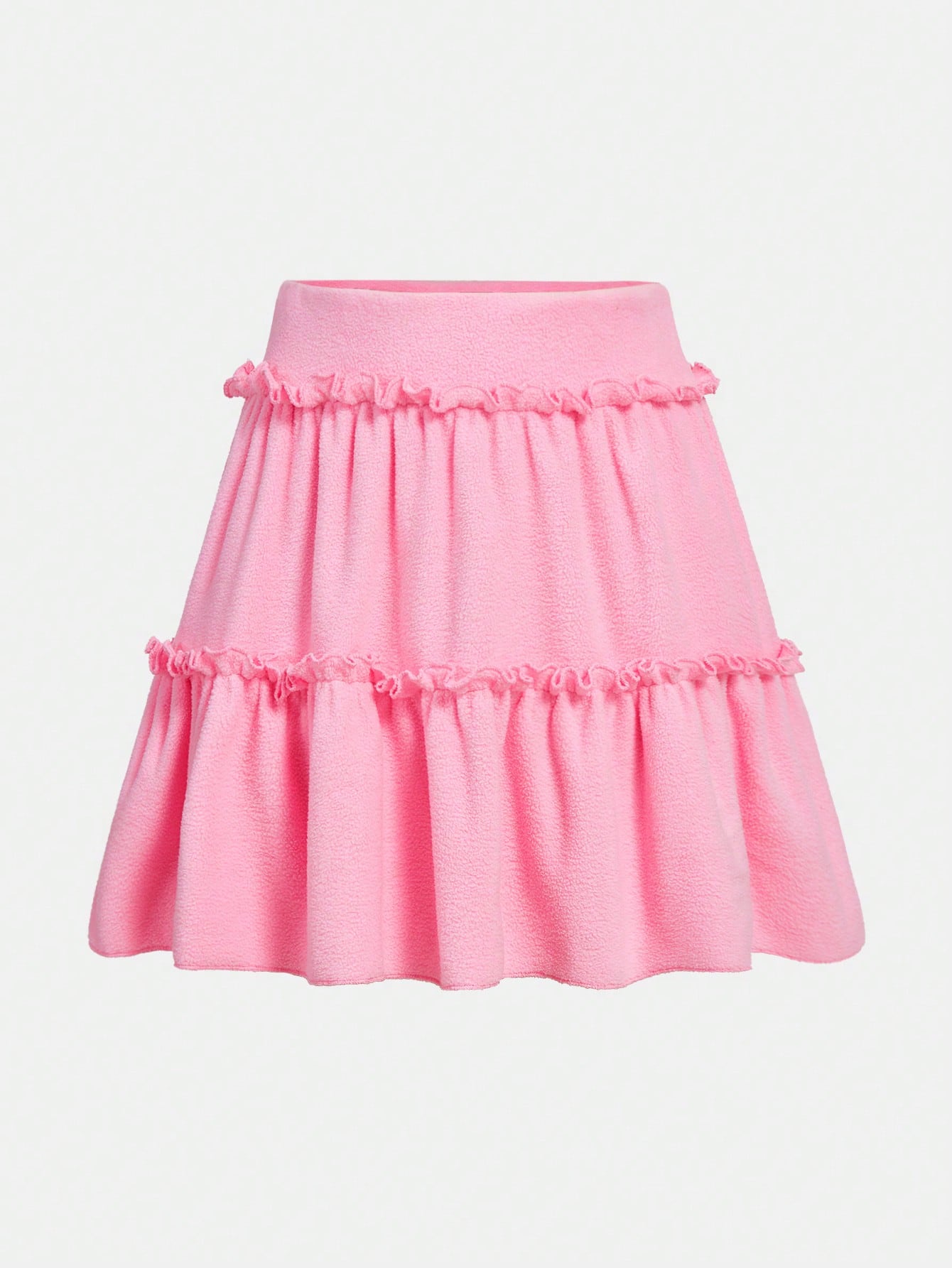Kawaii تنورة موحدة اللون مقلم بهدب حافة مكشكشة