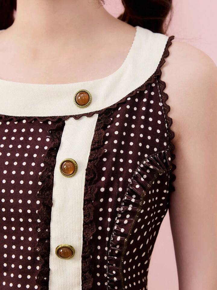 Kawaii فستان قصير بلا أكمام بطبعة نقاط بولكا وفيونكة على الطراز الرجعي