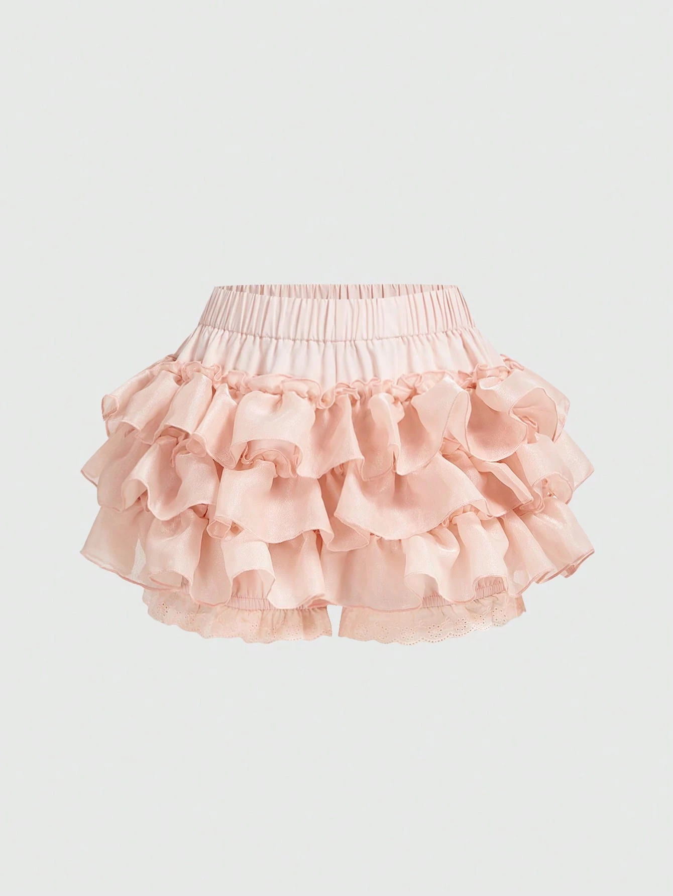 Kawaii شورتات نسائية بتصميم كشكش على الحافة بلون أحادي