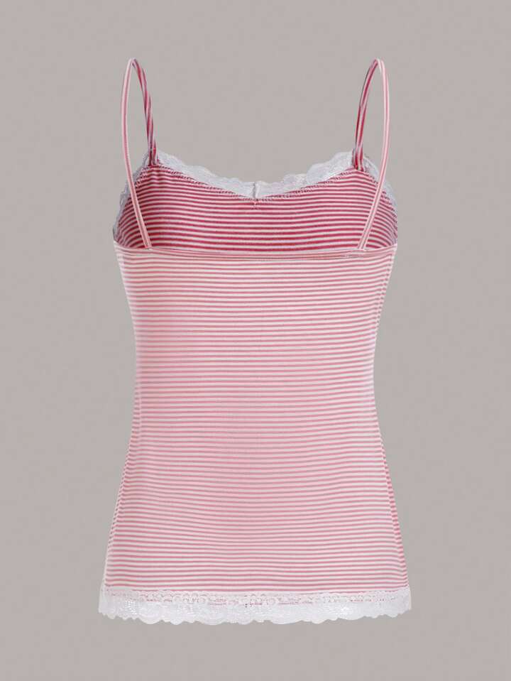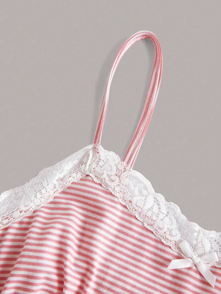 Kawaii صدرية كامي مخطط دانتيل متباين اللون