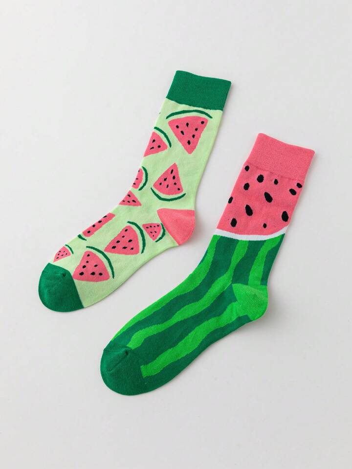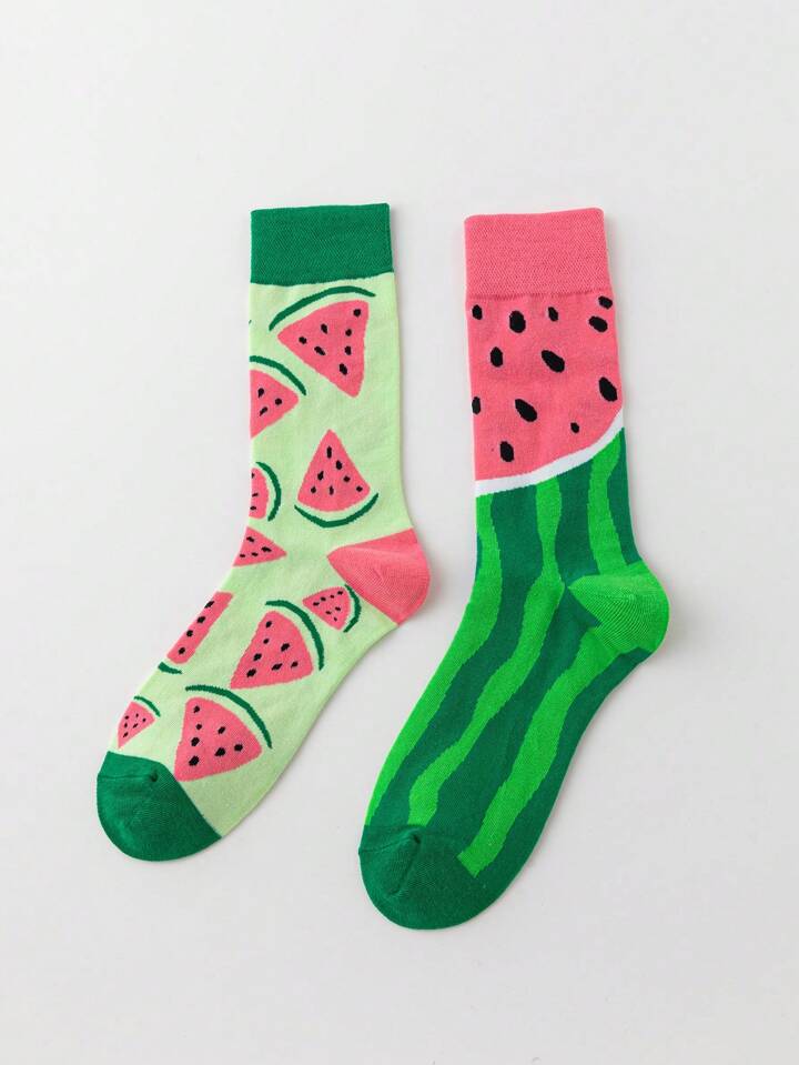 Kawaii جوارب نسائية قصيرة تصل إلى منتصف الساق جميلة ومتعددة الاستخدامات بنمط بطيخ الصيف