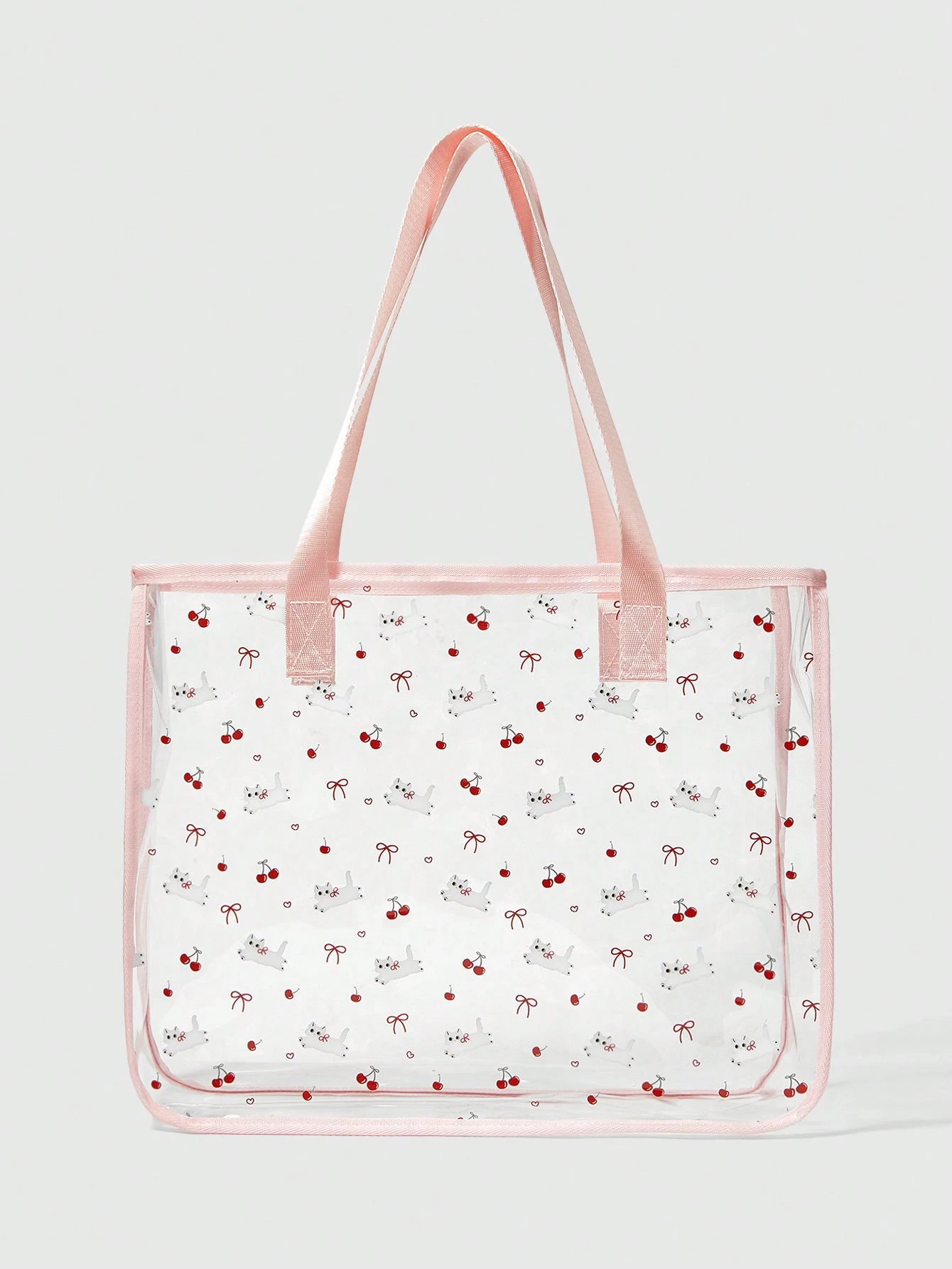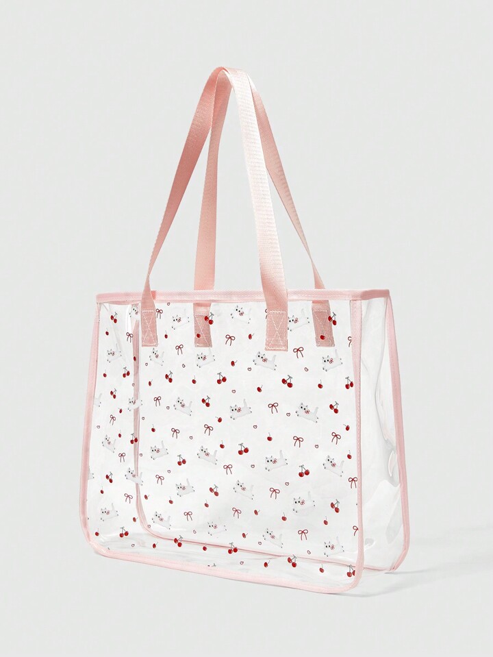 Kawaii حقيبة تسوق شفافة مع طبعات قطط وكرز لسيدات ، رقم الصنف 1368226