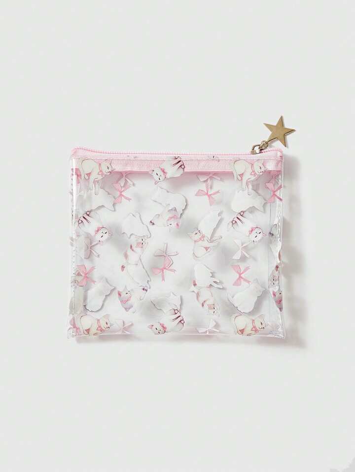 Kawaii حقيبة تجميل وردية شفافة من البولي فينيل كلوريد للأزياء