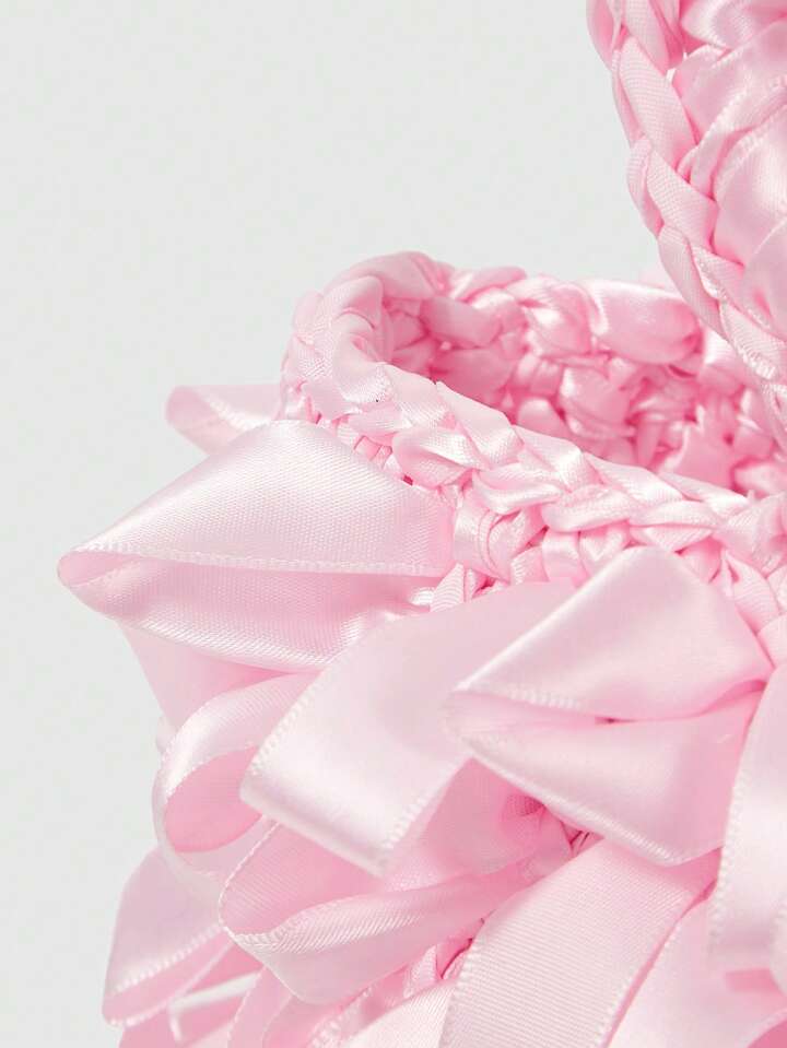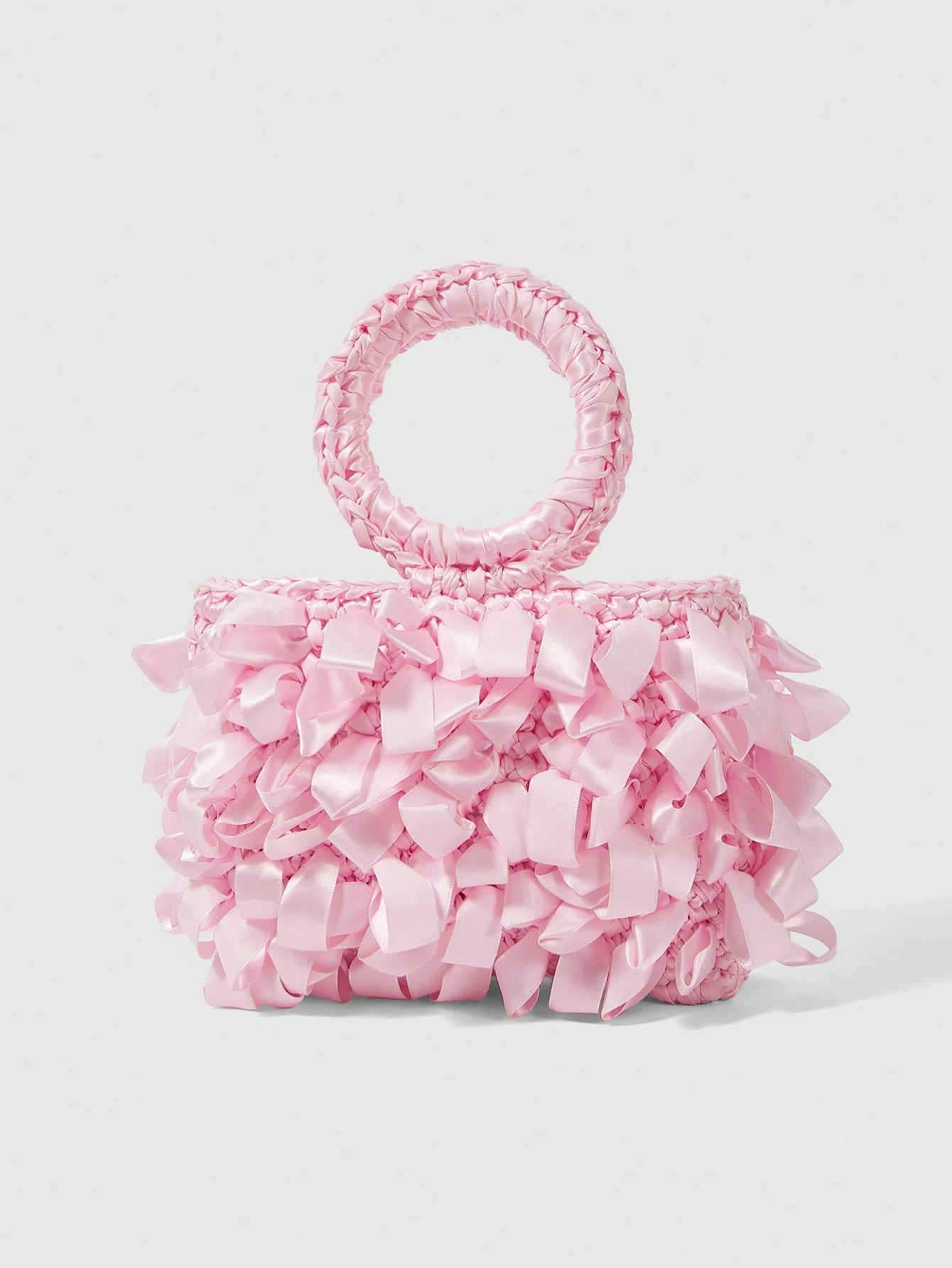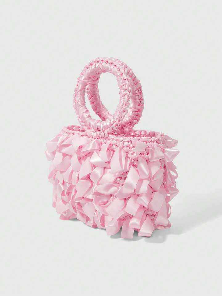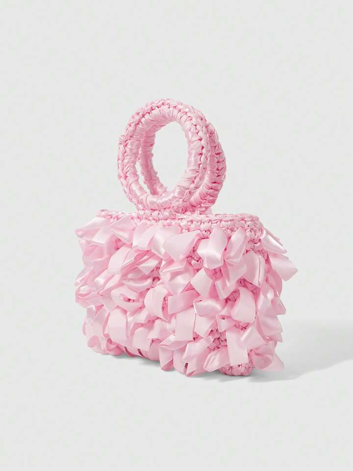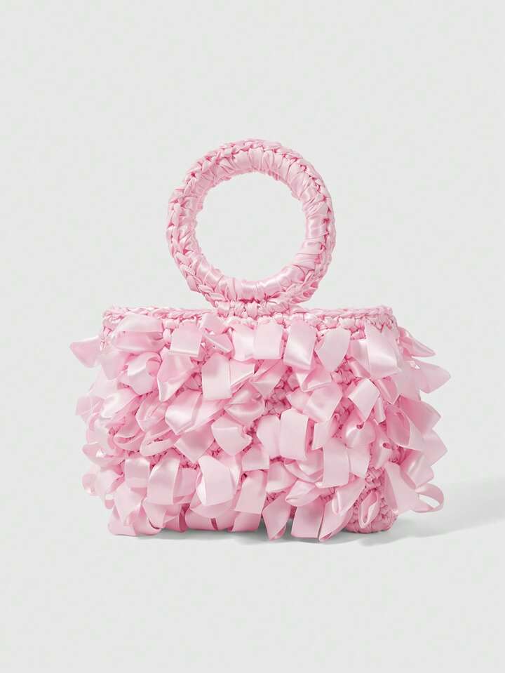 Kawaii حقيبة يد بمقبض مضفر بلون وردي على طراز العطلات