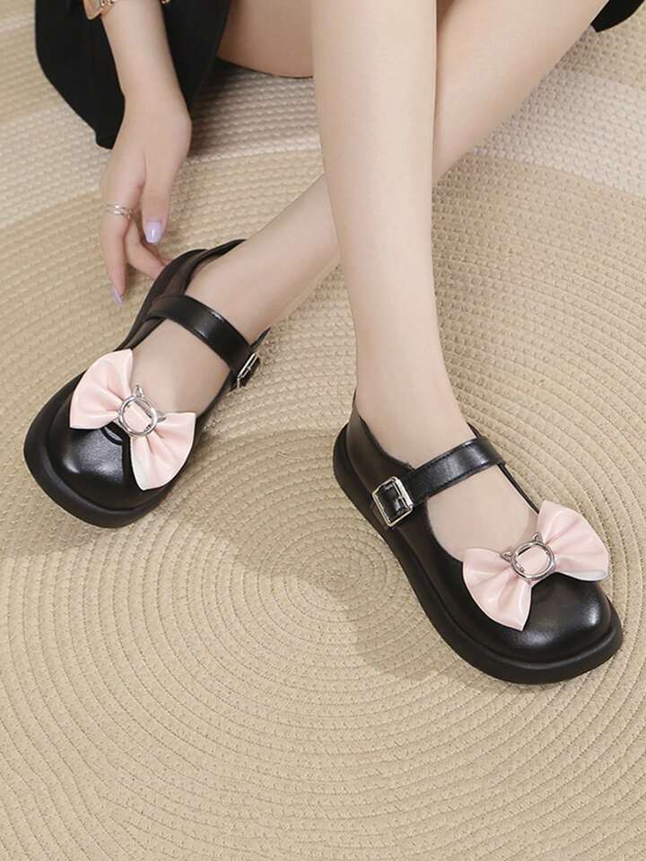 Kawaii أحذية ماري جين العتيقة والعصرية مع زخرفة الفيونكة، سهلة المطابقة، تقود الموضة!