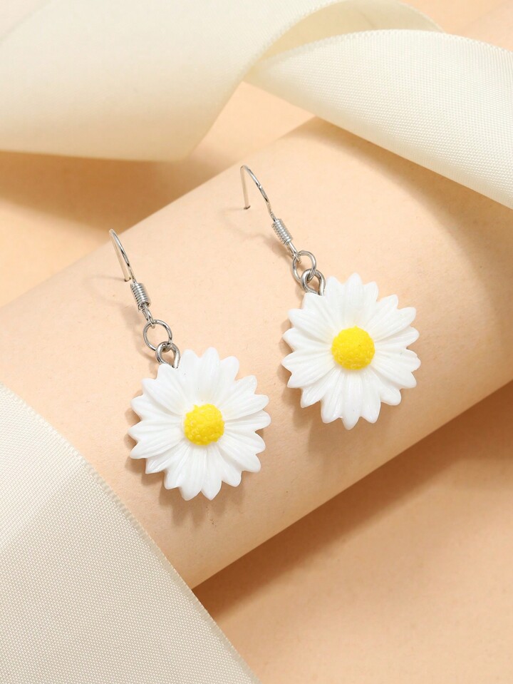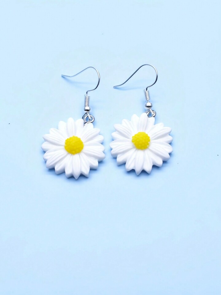 Kawaii اقراط أبيض زهر ديزي معلق الى ملابس يومية