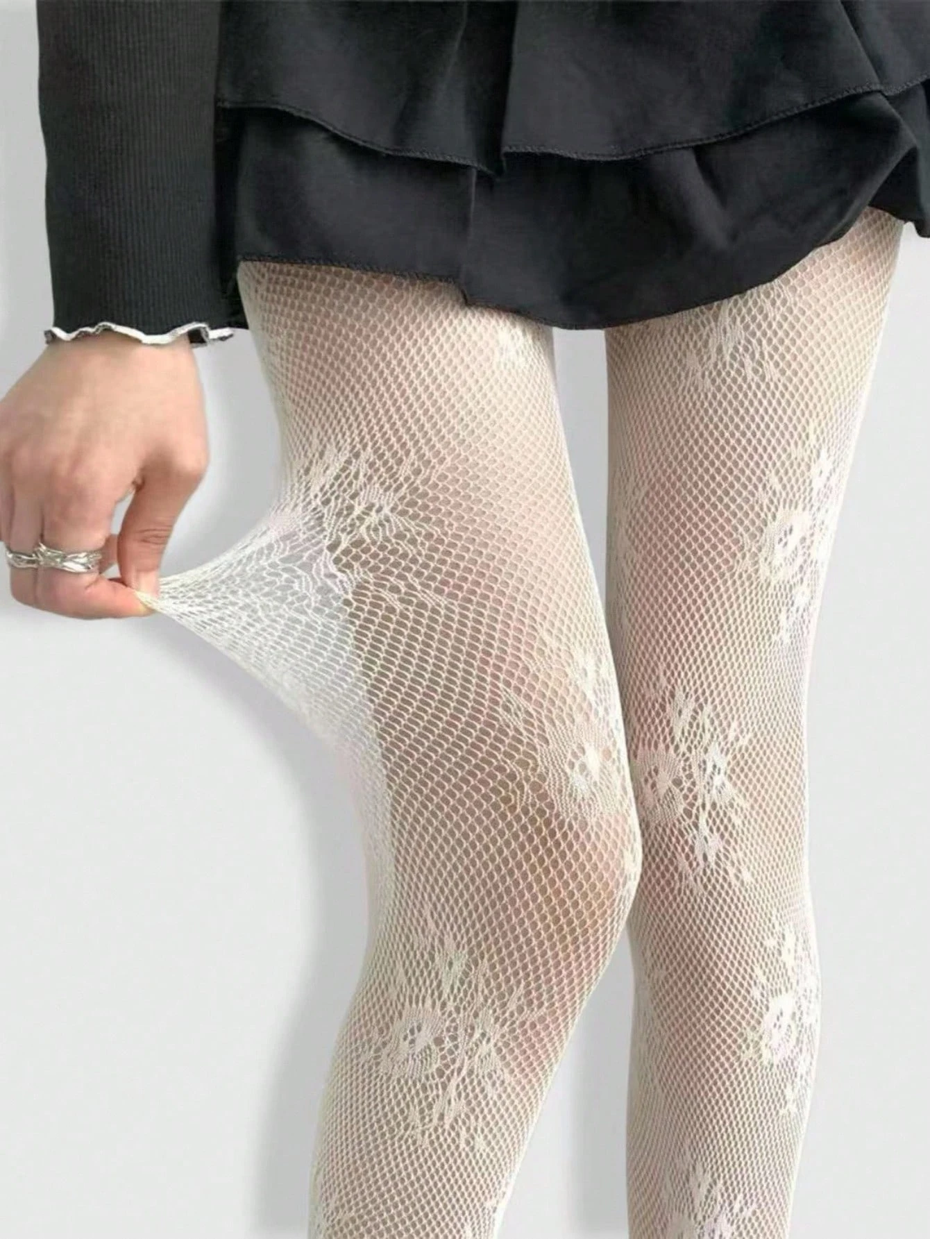 Kawaii جوارب شبكية عالية المرونة بنقشة زهرية بيضاء