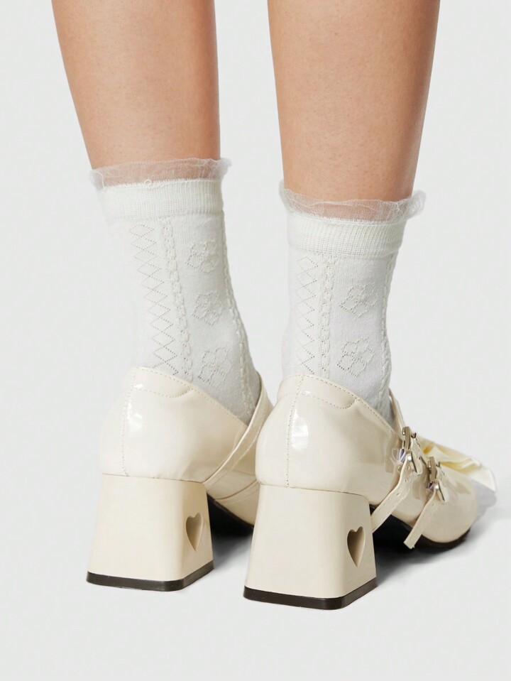 Kawaii أحذية كعب عالي بيضاء، صنادل ماري جين ذات كعب منصة مائية مقاومة للماء وشريط متقاطع وفيونكة، أحذية رسمية جذابة للعمل، أحذية كعب منصة بطراز غوثي داكن للنساء