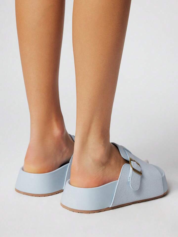 Kawaii صنادل شاطئية رومانية لِلنساء بحزام أزرق مشبك ، صنادل صيفية مفتوحة الأصابع ذات قاع سميك وتصميم مُسترجع ، صنادل منصة قاعدة سميكة للنساء