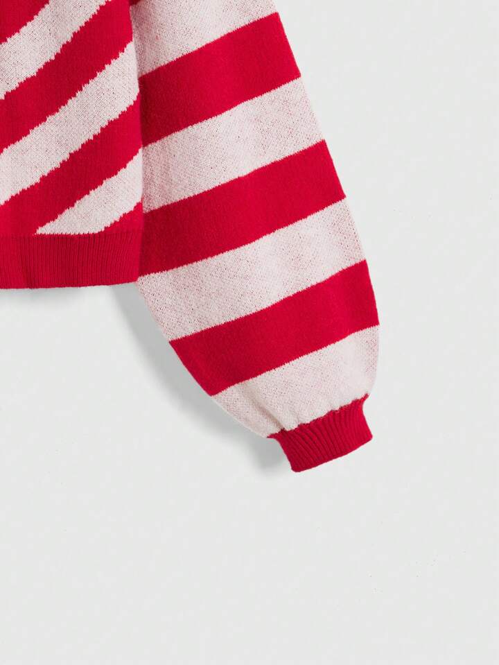 Kawaii كنزة صوفية صوفية مطرزة بنقشة القلوب لعيد الحب/عيد الميلاد للنساء