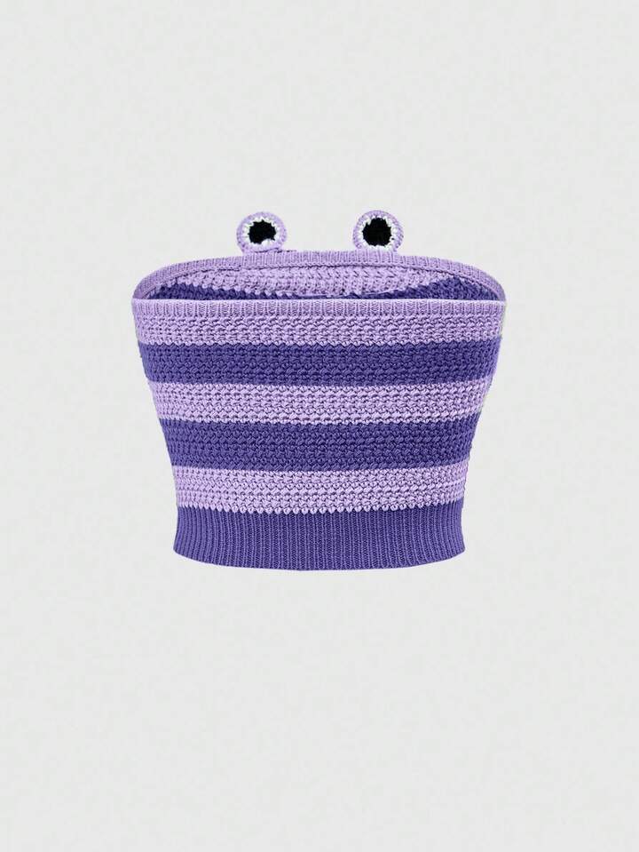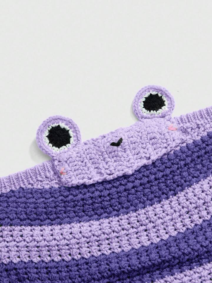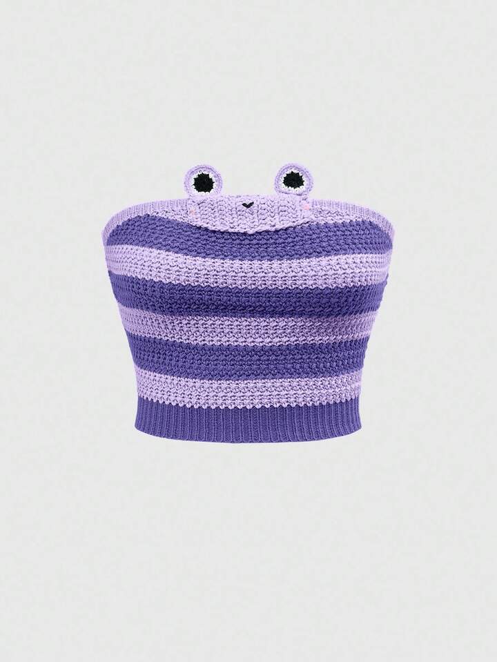 Kawaii ملابس علوية نسائية مخططة محبوكة بتصميم ضفدع ثلاثي الأبعاد