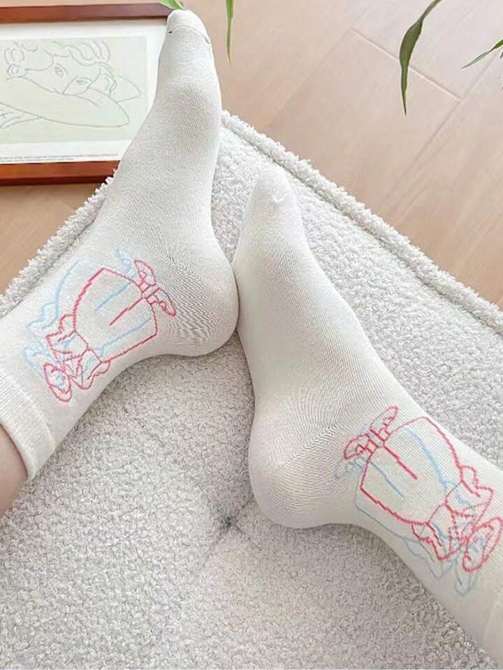 Kawaii جوارب نسائية منتصف الساق بنمط مجرد للشخصيات