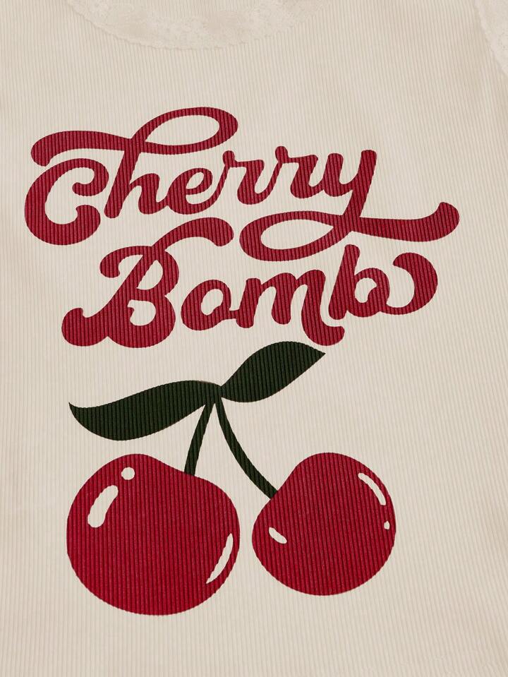 Kawaii توب كامسول بتطريز دانتيل بنقشة الكرز للنساء "قنبلة الكرز"