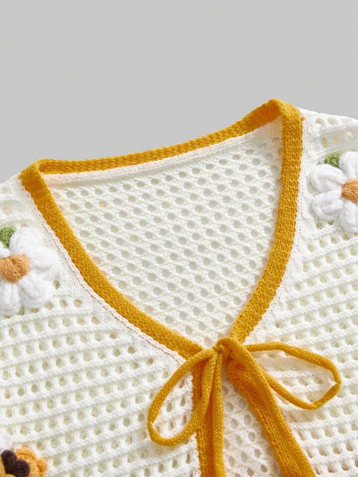 Kawaii كارديجان خفيف الوزن مزين بالكروشيه نمط ريفي بنقوش الأزهار والنحل للنساء ، صيفي