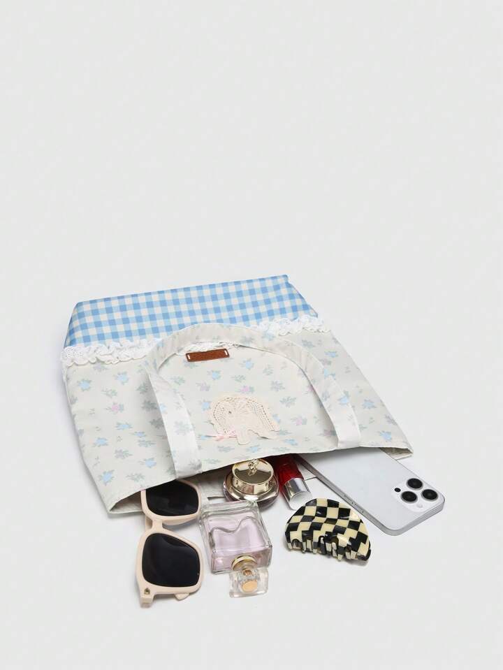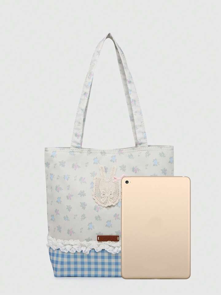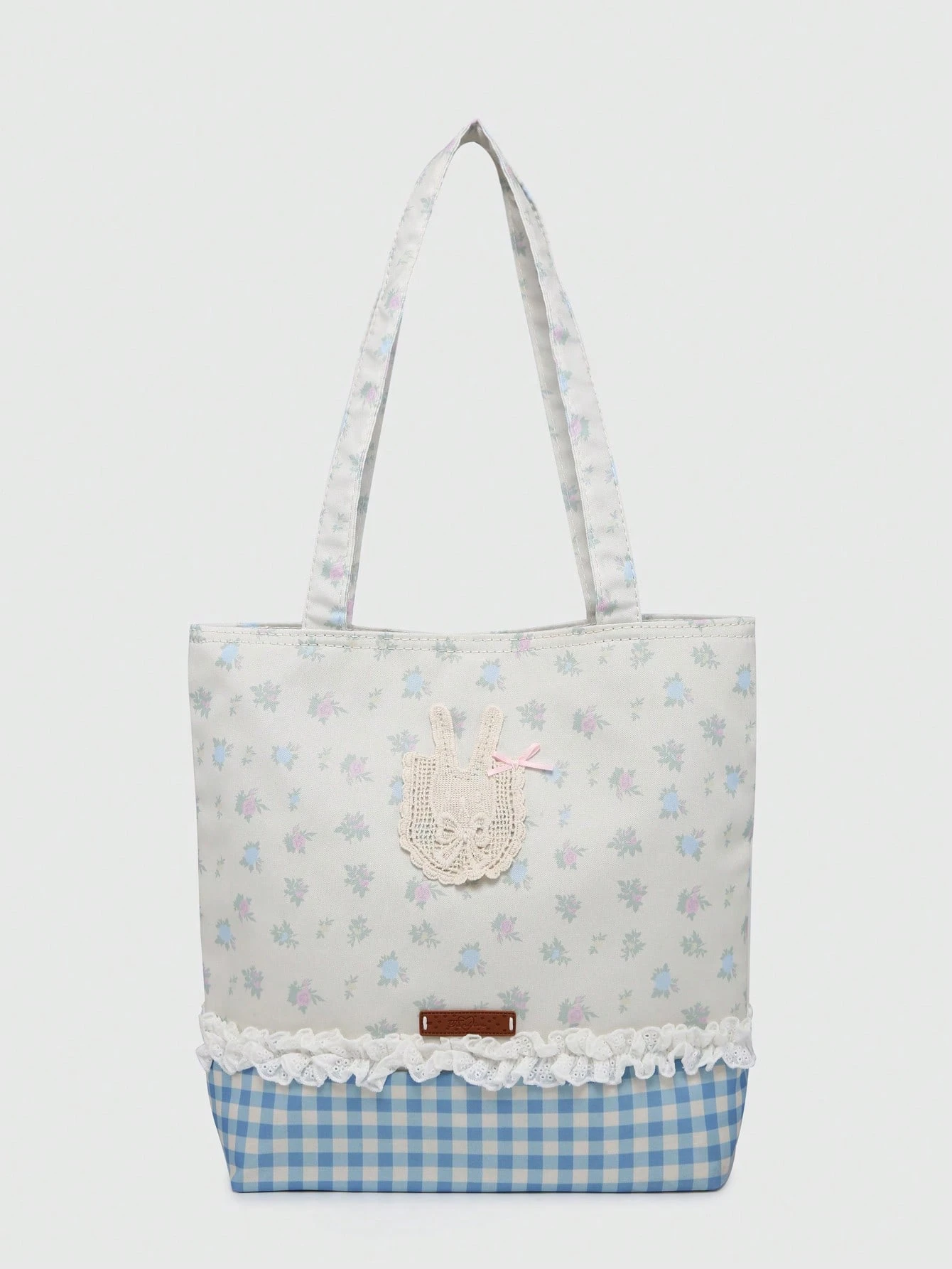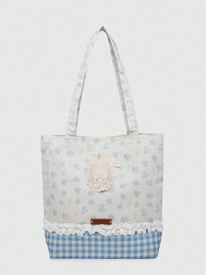 Kawaii حقيبة كتف نسائية جميلة بزخرفة شريط الدانتيل الزهري المتناثر والعقدة