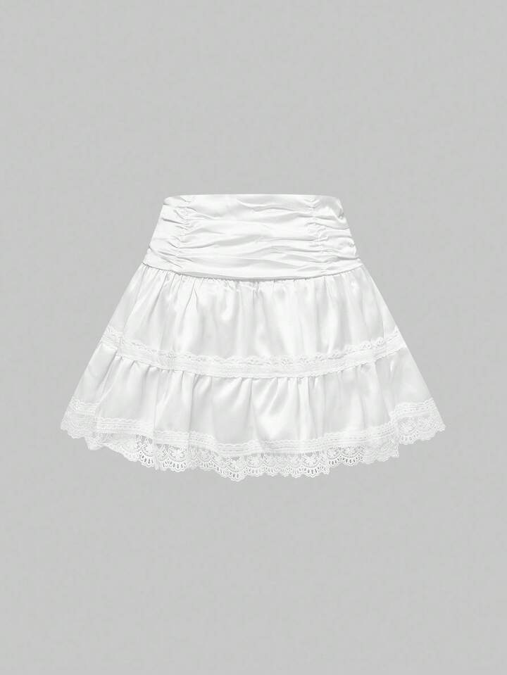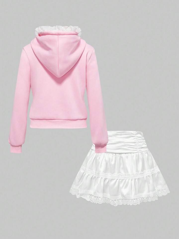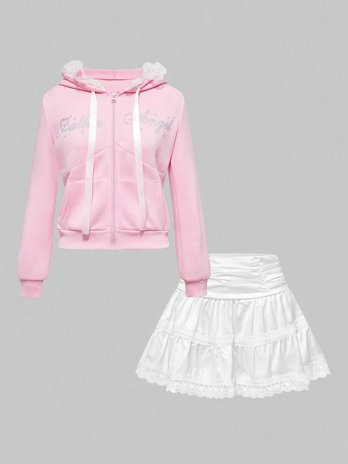 Kawaii طقم قبعة شريط أربطة لامعة بأجنحة وتنورة كعكة بيضاء قطعتين، للنساء، خريف/شتاء