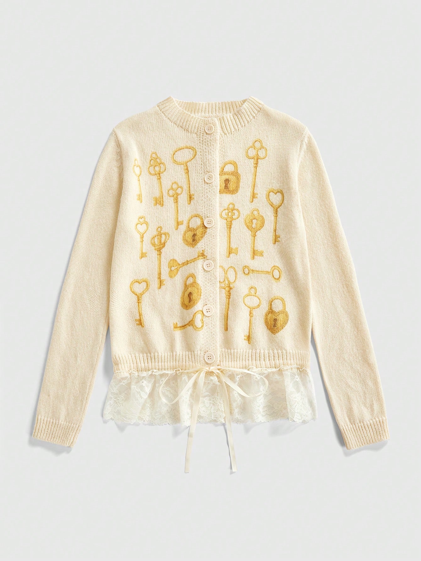 Kawaii كارديجان محبوك بنمط مفتاح كلاسيكي للنساء