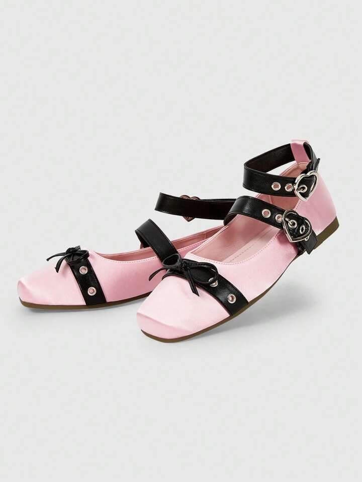 Kawaii أحذية نسائية أنيقة ذات تصميم عريض للأصابع وطية إبزيم ، أسلوب بنكي حلو ، باللون الوردي مناسبة للحفلات والارتداء اليومي وفساتين المساء، مريحة وسهلة الارتداء متعددة الاستخدامات