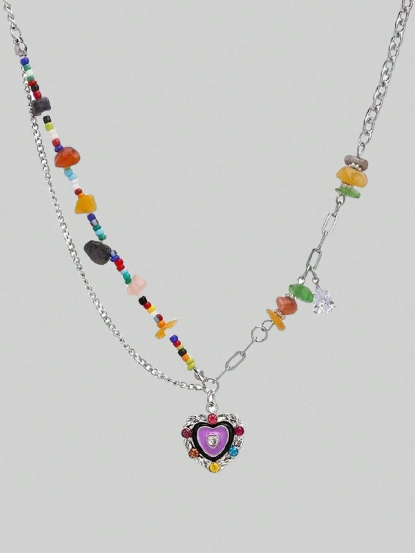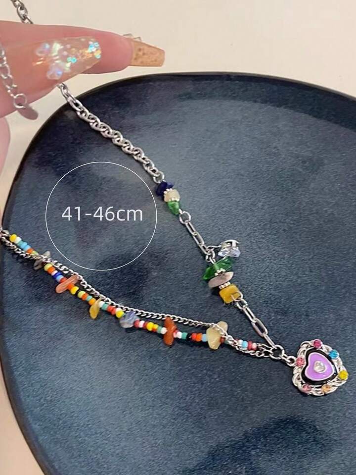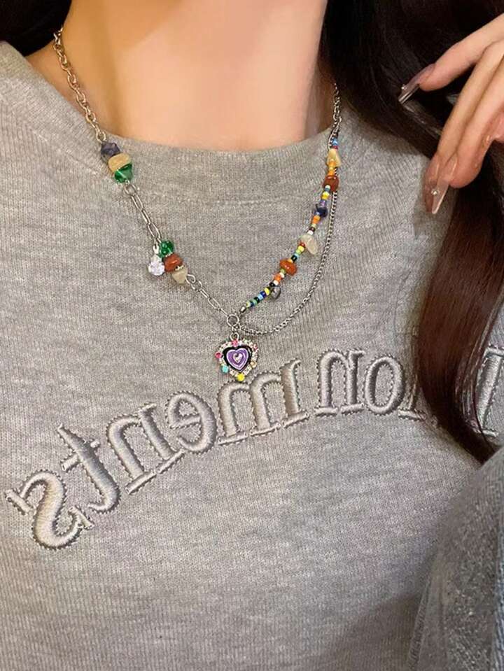 Kawaii قلادة عقد اللؤلؤ على شكل قلب عصرية للنساء