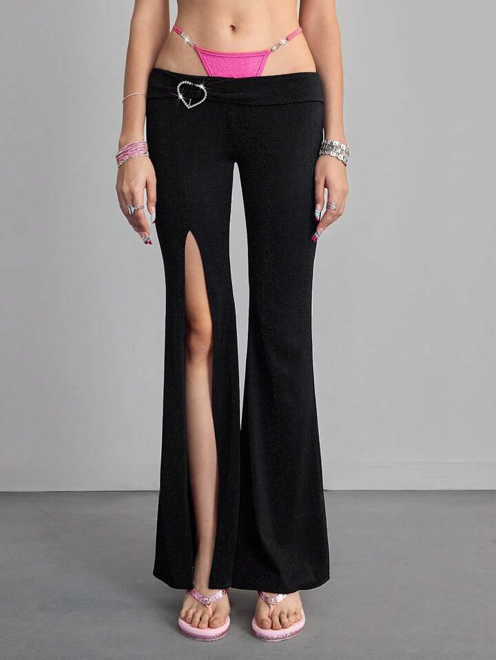 Kawaii سراويل صدفية الجرس تسريبات جانبية ذات الماس على شكل قلب، إطلالة نسائية أنيقة