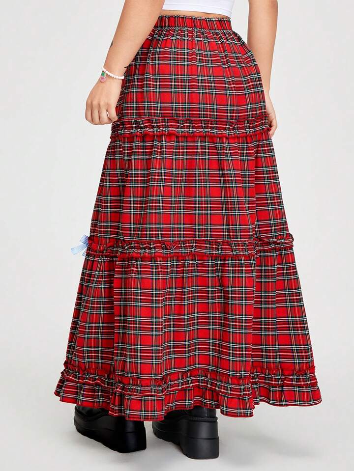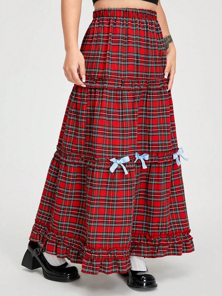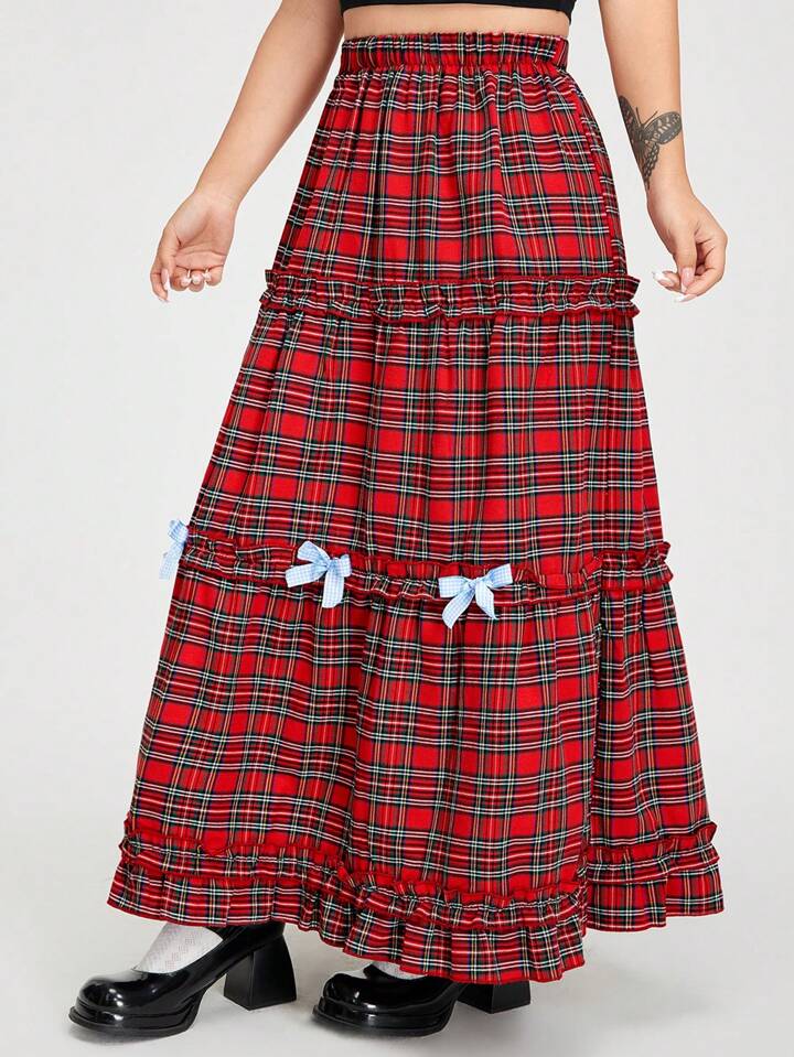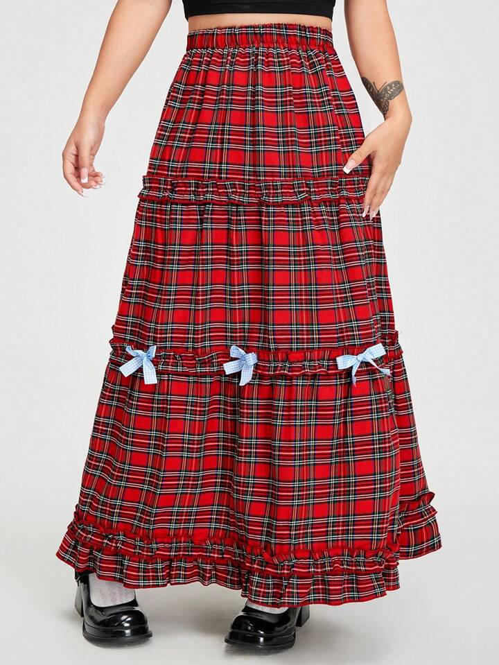 Kawaii تنورة نسائية بنمط الشبكة وقوس