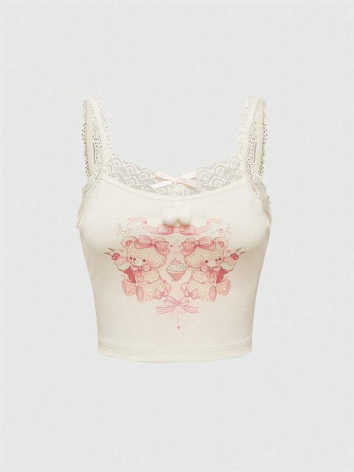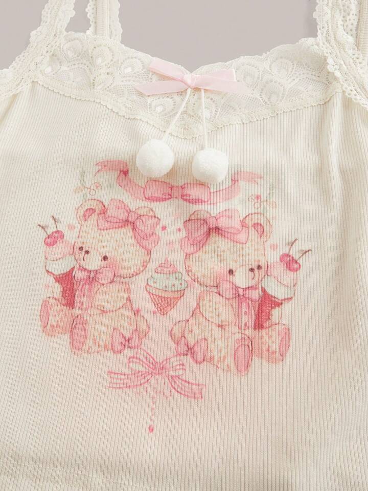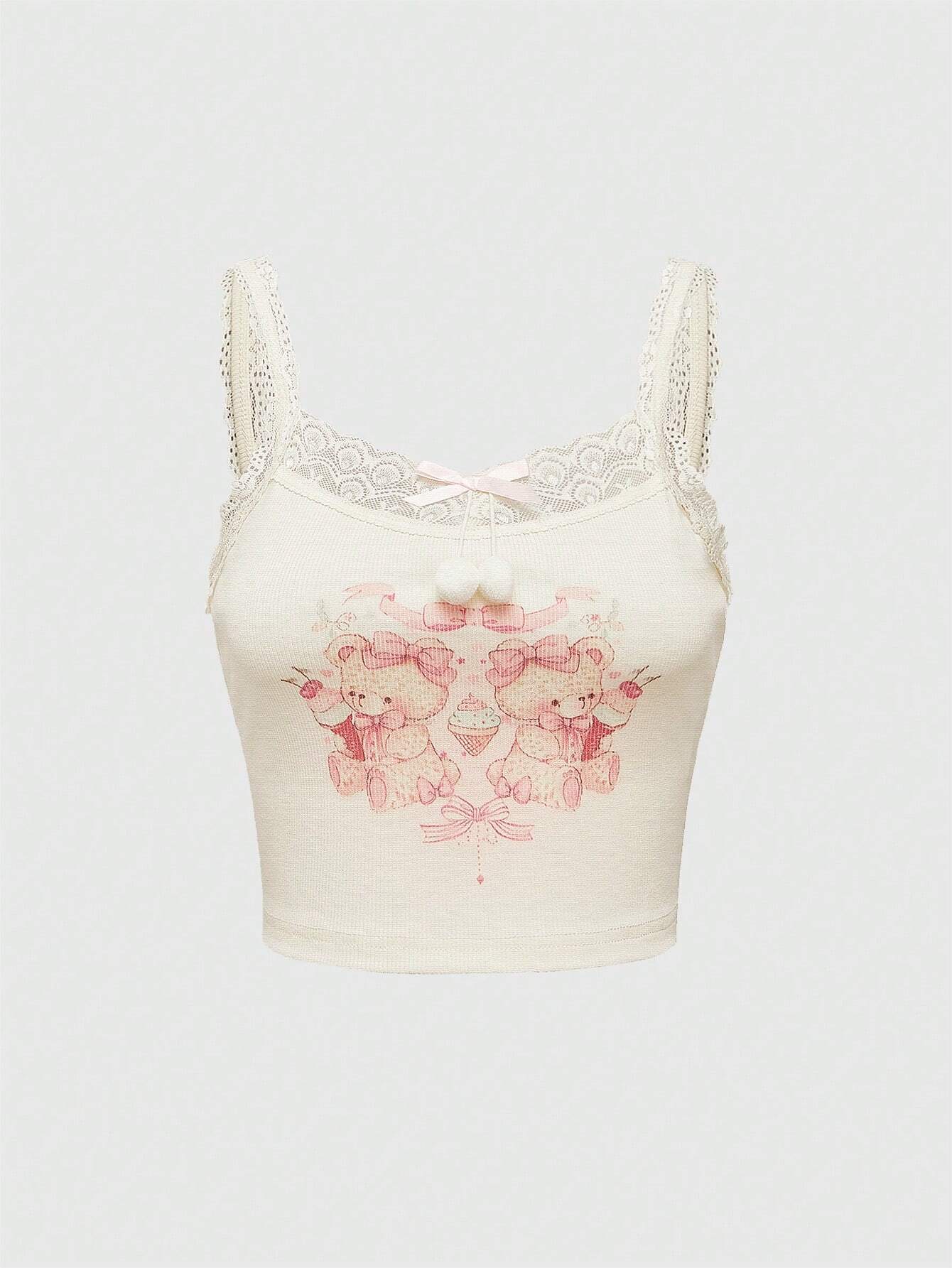 Kawaii ملابس علوية كاملي لا أكمام مزينة بعقدة نسائية كاجوال