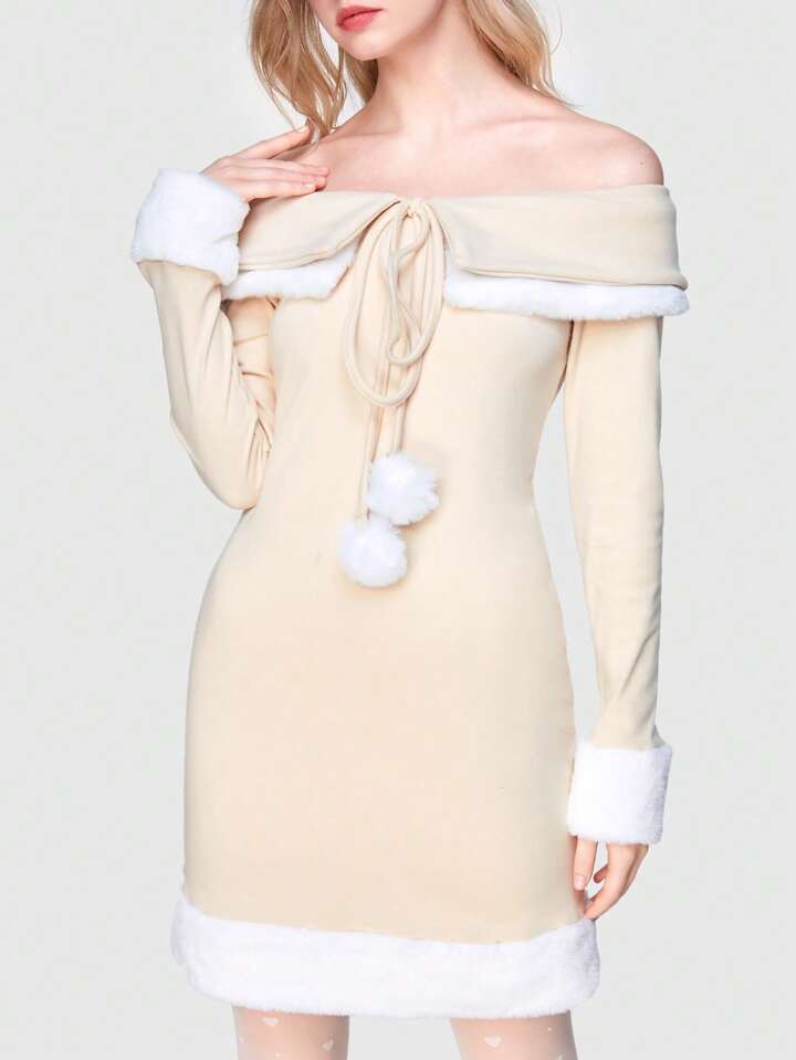 Kawaii فستان نسائي ضيق بجزء علوي يكشف الكتفين وقطع الألوان
