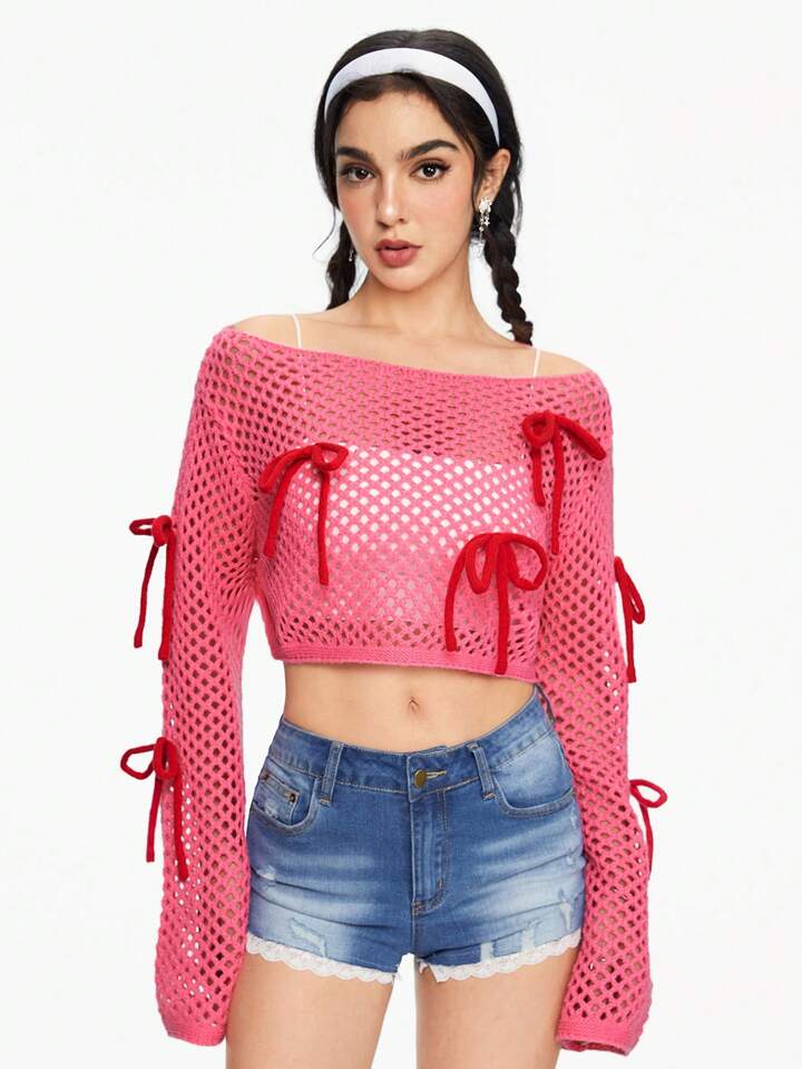 Kawaii كنزة صوفية بتصميم بسيط ومزخرفة بفراشة مجوفة للنساء للإرتداء اليومي