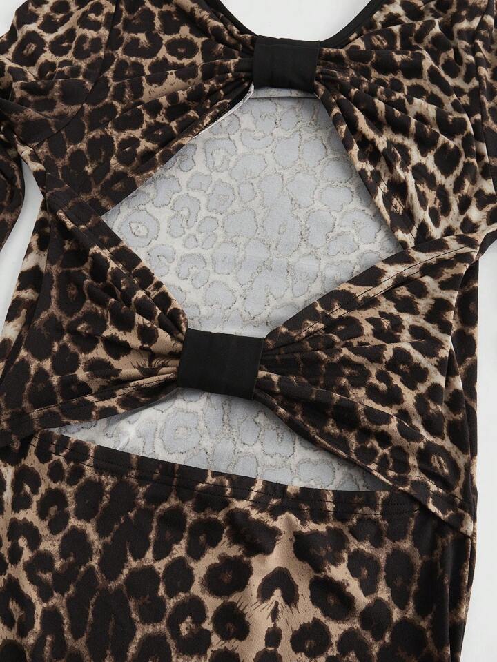 Kawaii فستان قصير مكشكش مفتوح بأكمام واسعة بطبعة نمر نسائي مثير