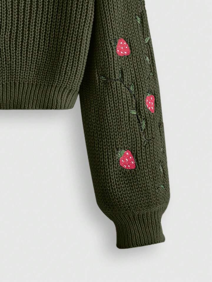 Kawaii كارديجان قصير أحادي الصدر مطرز بالفراولة للنساء ، مناسب للخريف والشتاء